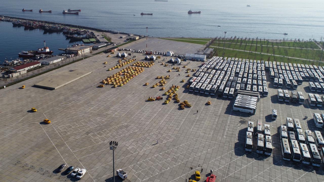 Düne nazaran araçların sabah saatlerinde alana toplu şekilde alınmayıp, gruplar haline zabıta ekipleri kontrolünde alındığı görüldü.