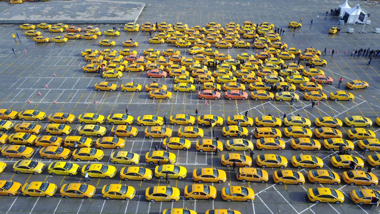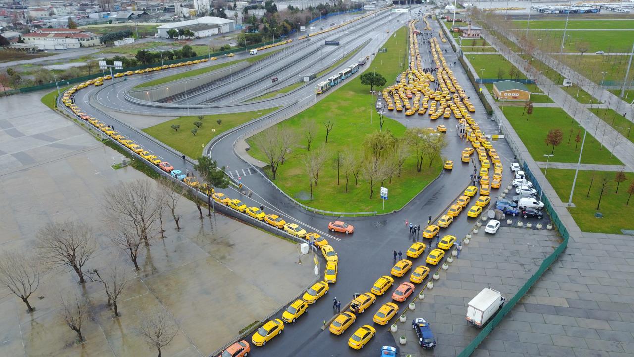 Taksimetre güncelleme kuyruğu havadan böyle görüntülendi