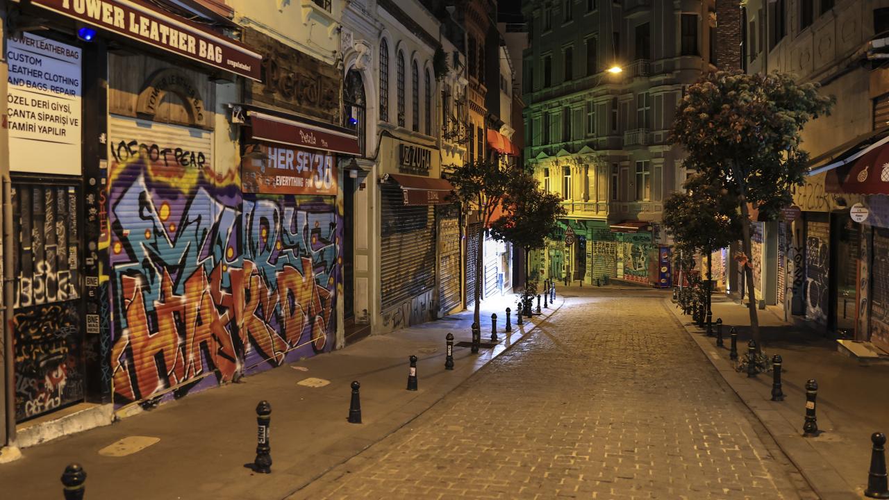 İstanbul'da yeni tip koronavirüs (COVİD-19) tedbirleri kapsamında uygulanan tam kapanma döneminin ilk gününde, Taksim Meydanı ve İstiklal Caddesi'nde kısıtlamadan muaf olan turistlerin gezdiği görüldü.