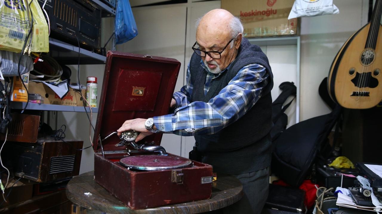 Tamirciliğe ömrünü adayan Ekrem usta arızalı gramofonlara ses veriyor