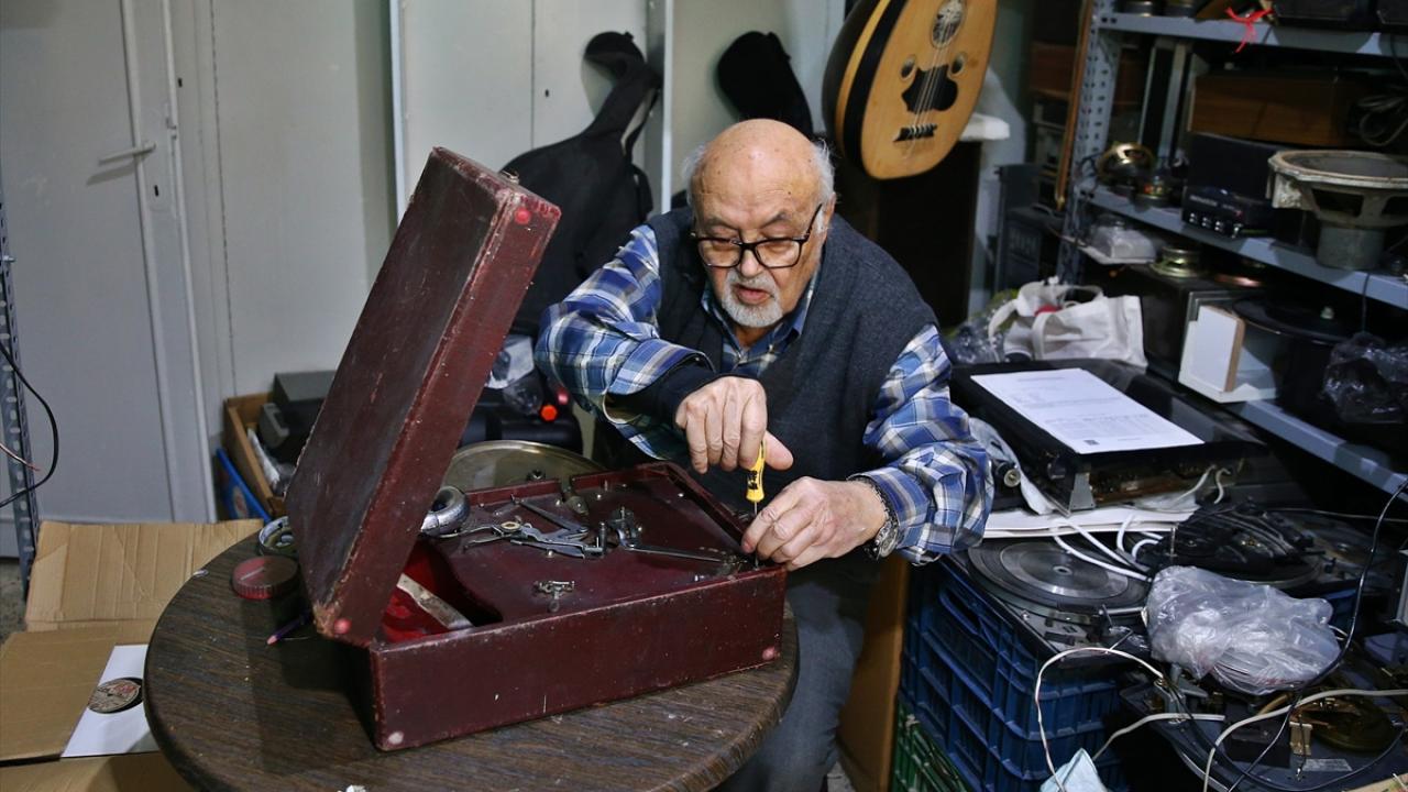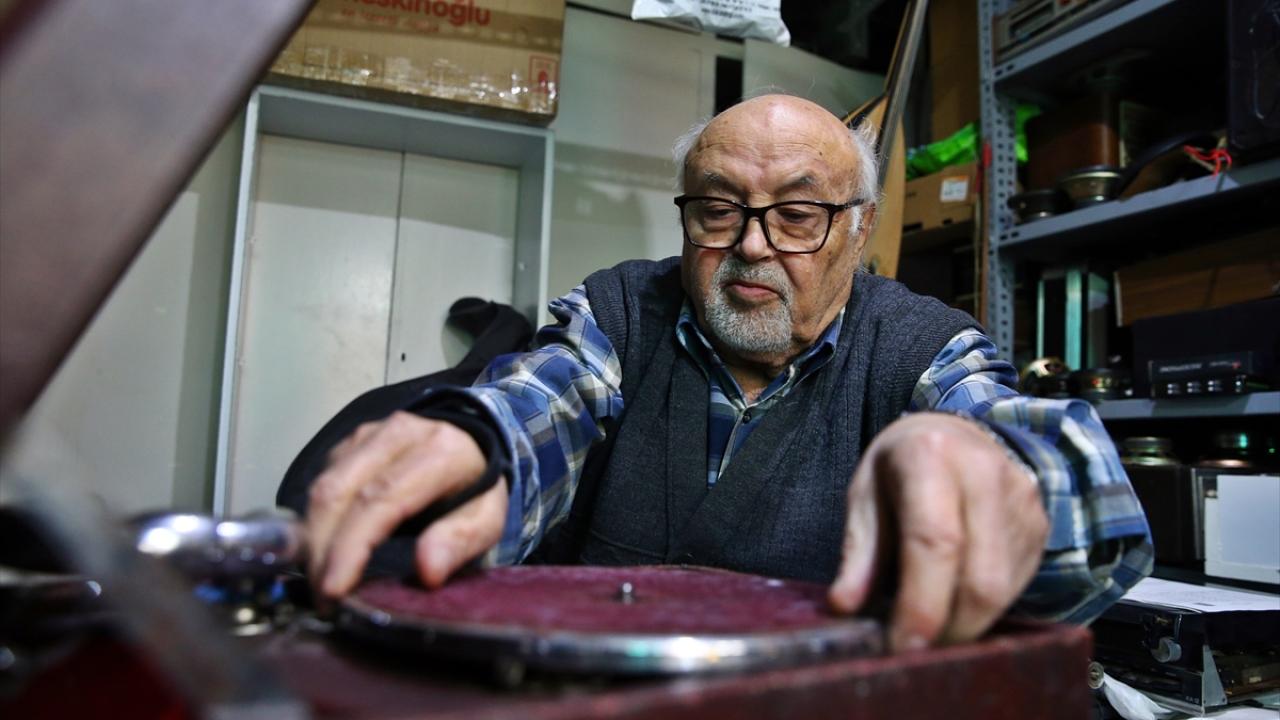 Babasından öğrendiği gramofon tamirciliğini sürdüren 80 yaşındaki Ekrem Kırıkcı, ikinci evi olarak gördüğü atölyesinde arızalı plak çalarları yeniden çalışır duruma getiriyor.