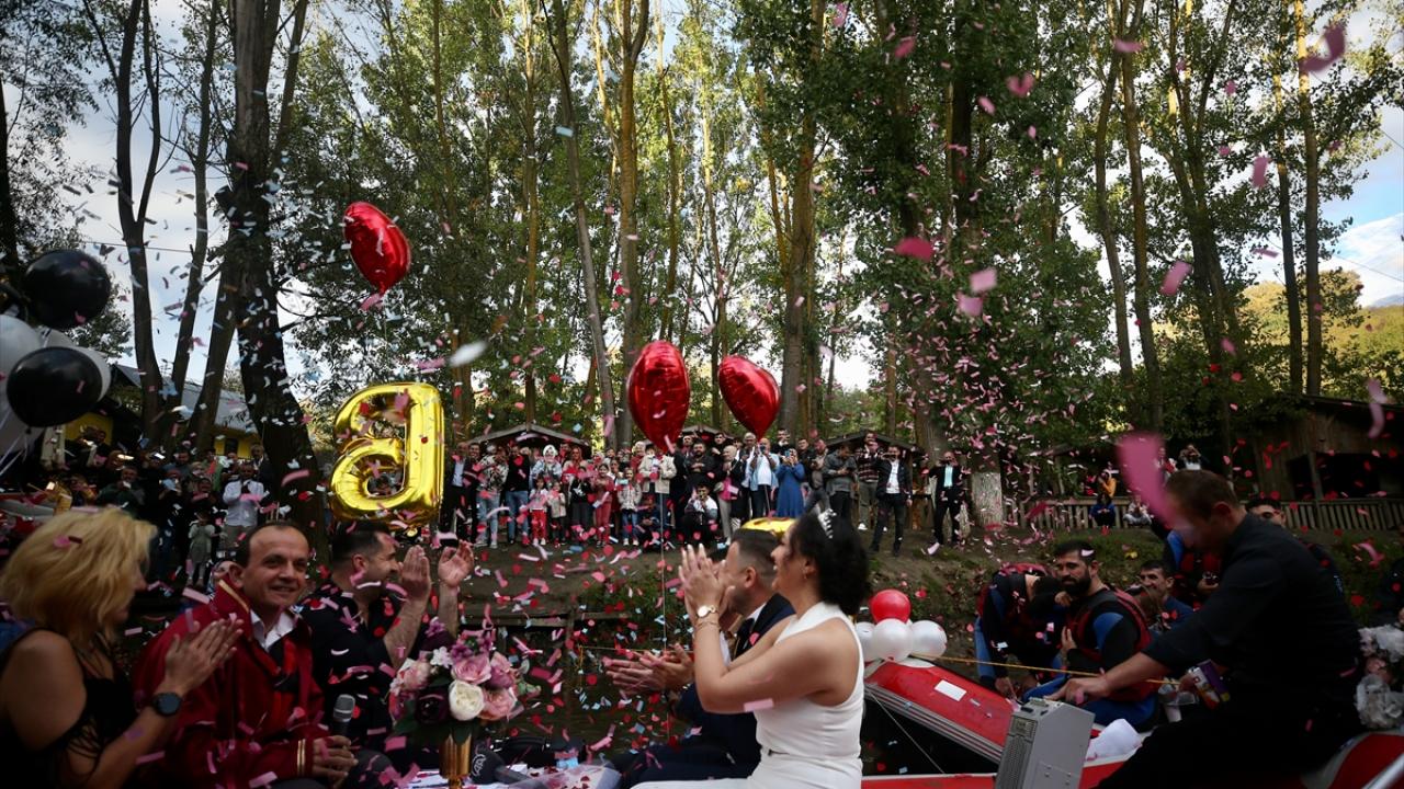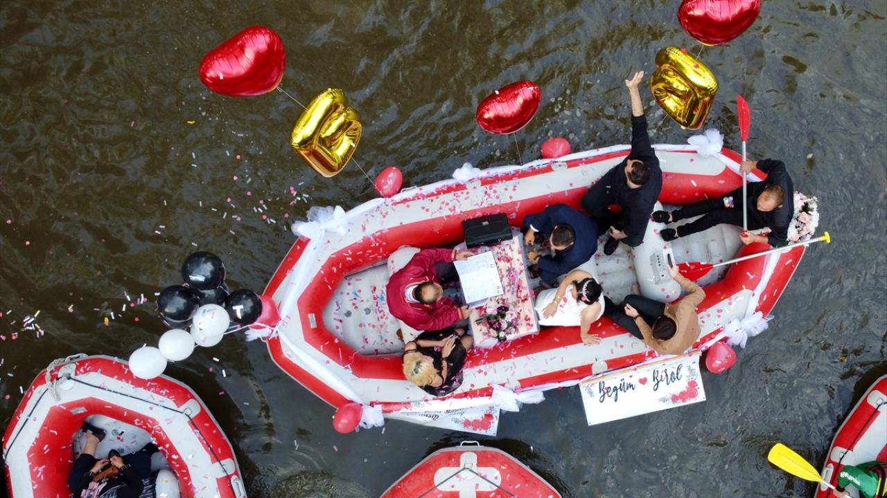 Tanıştıkları rafting botu üzerinde dünyaevine girdiler