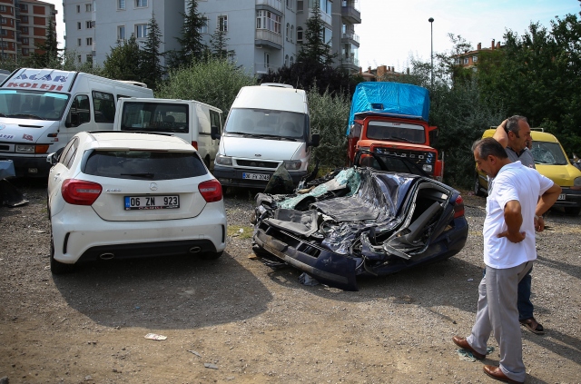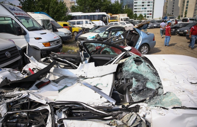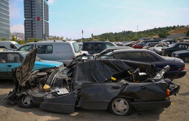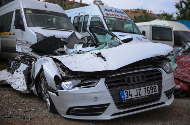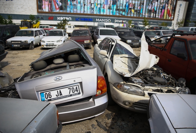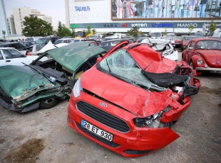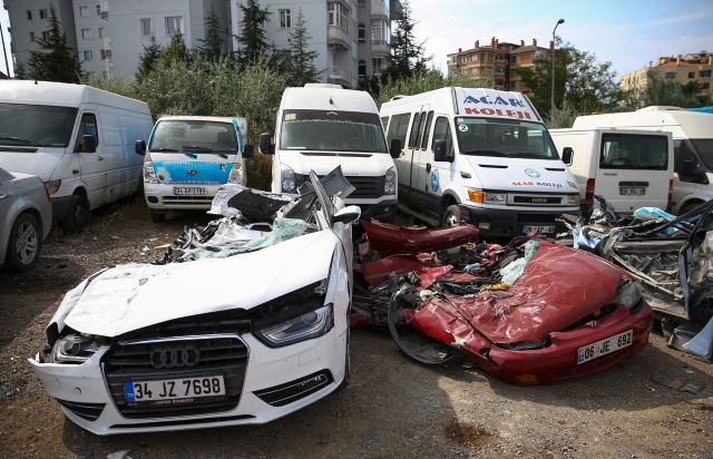 FETÖ'nün 15 Temmuz'daki darbe girişimi sırasında, cuntacıların tanklarla ezdiği araçlar, Ankara Emniyet Müdürlüğüne ait otoparkta tutuluyor.