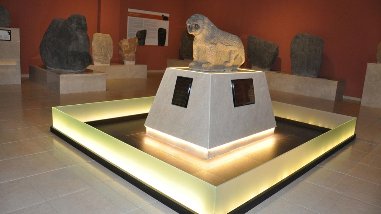 Kahramanmaraş Kalesi`nden 1886`da İstanbul Arkeoloji Müzesine götürülen ve geçen yıl kentte getirilen Maraş Aslanı Heykeli, Kahramanmaraş Arkeoloji Müzesinde sergilenmeye başlandı. (Arşiv- 23.01.2014)