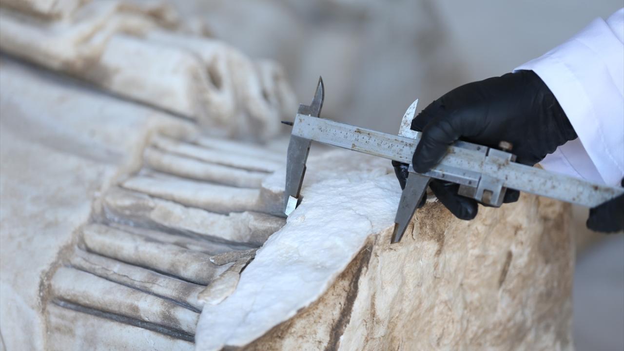 Heykelin 8 parça halinde gün yüzüne çıkarıldığını anlatan Güllü, "Heykelin öncelikle analiz işlemleri ve provaları yapıldı. Ardından bilimsel kriterlere ve aslına uygun şekilde bütün iş, işlemleri tamamlandı." diye konuştu.