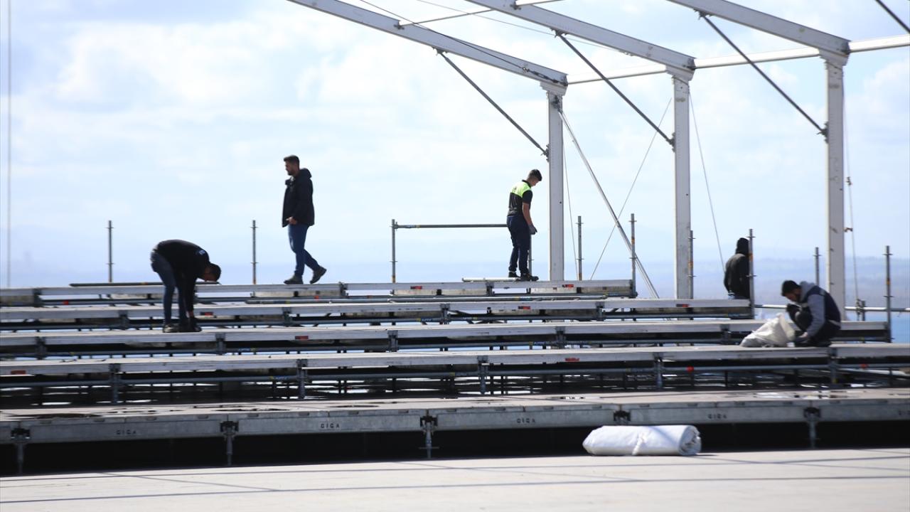 Törenlerde kullanılacak tribünlerin kurulumunda da sona yaklaşıldı.