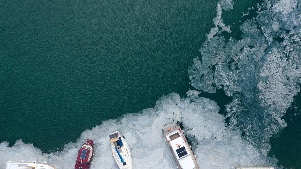 Çanakkale Boğazı`nın çeşitli noktalarında etkili olan müsilaj da havadan çekilen görüntülerle kayda alındı.