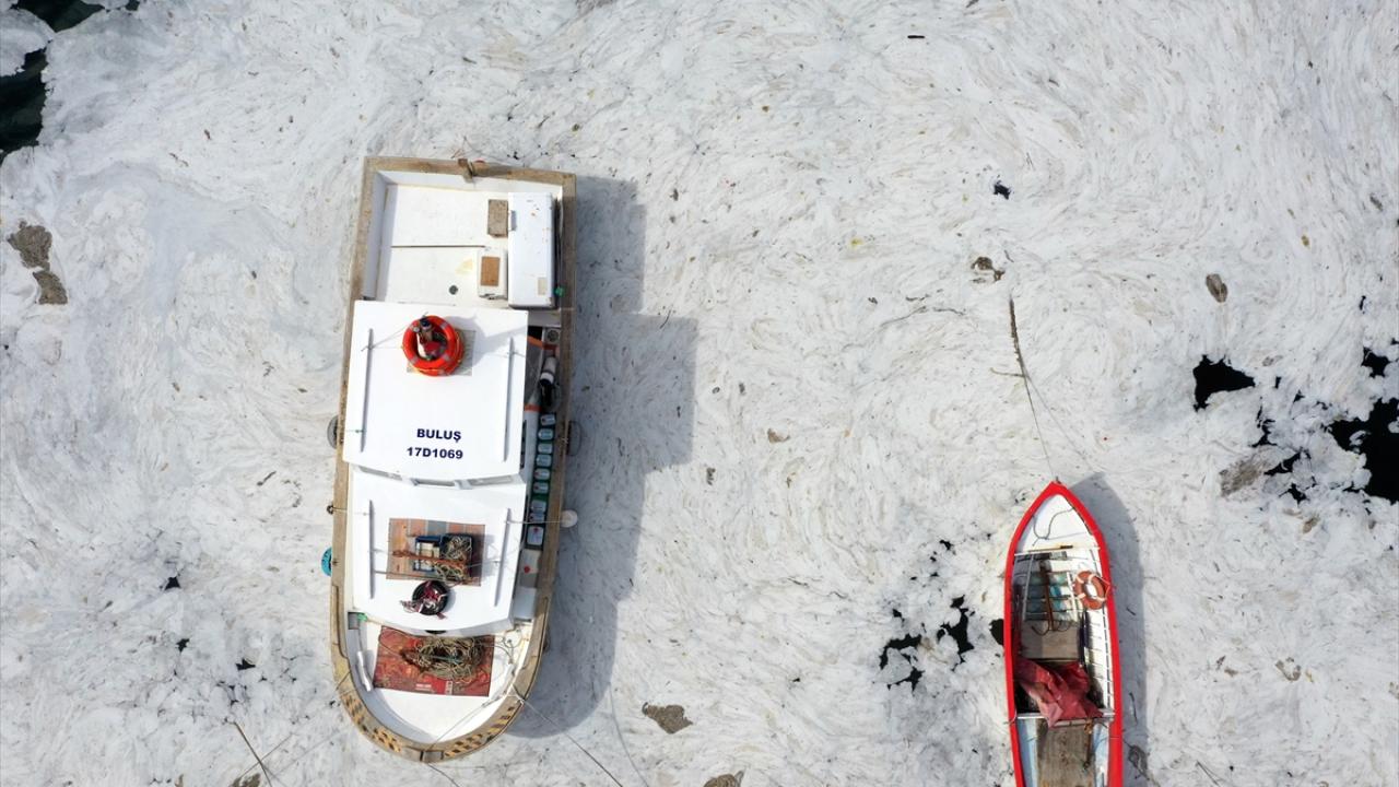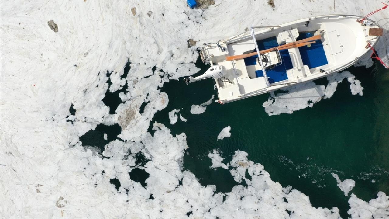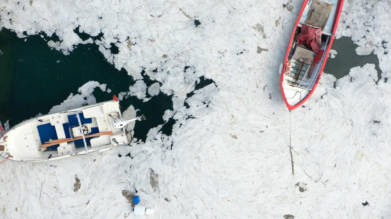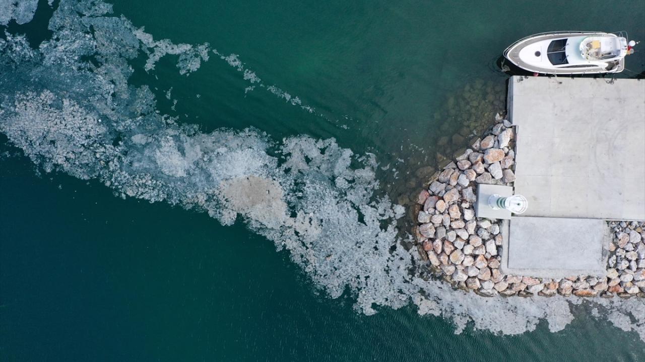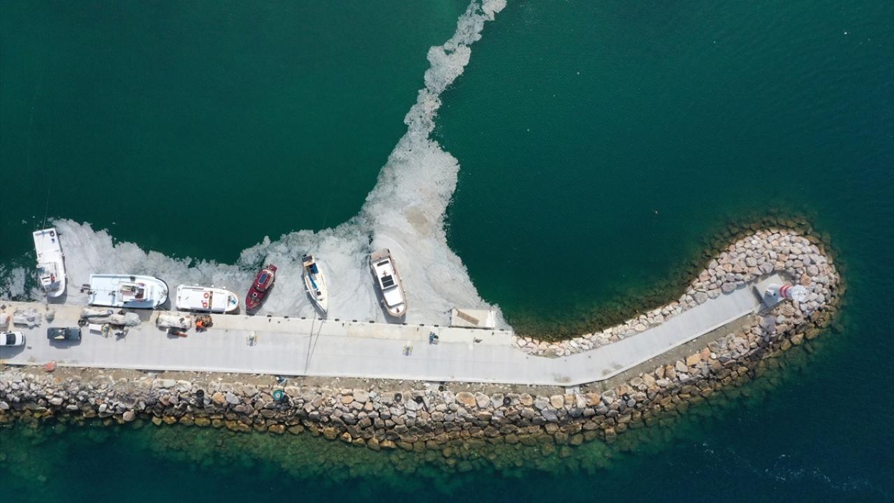 Bazı bölgelerde su yüzeyinde beton görünümü oluşturan müsilajın bölgede yayıldığı gözlendi.