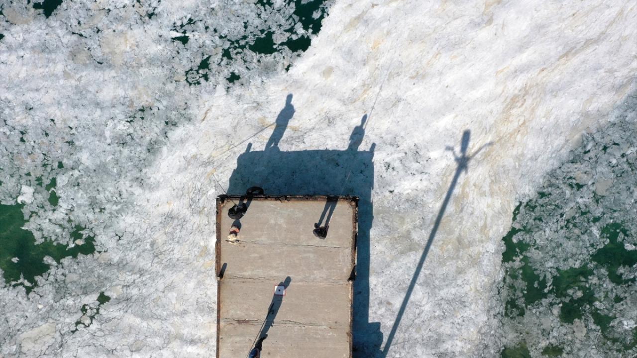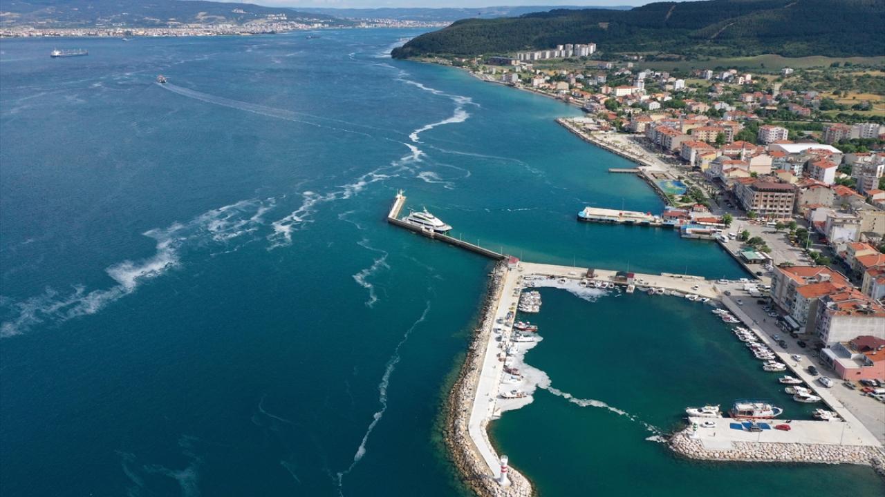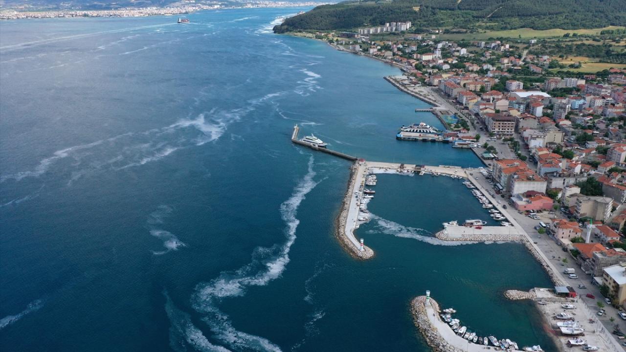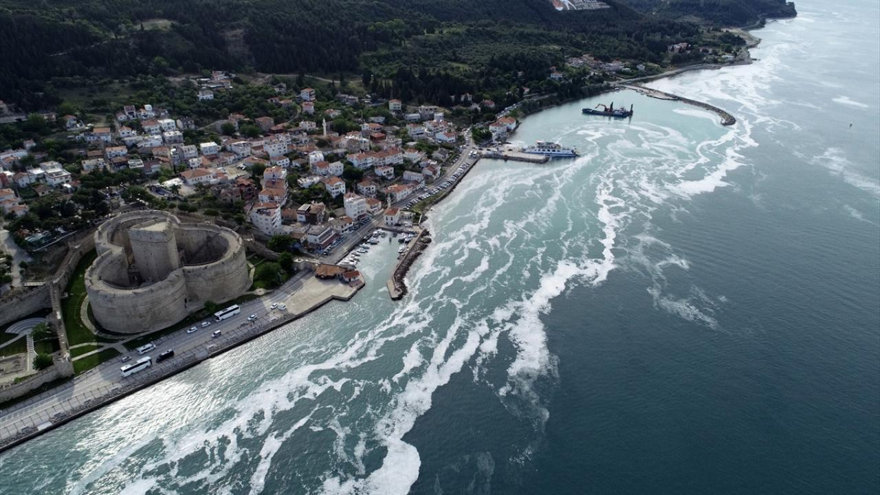 Boğazın çeşitli noktalarının yanı sıra Eceabat ilçesi ile Kilitbahir köyü sahilinde de görülen müsilaj, yaklaşık 500 metre yükseklikten drone ile kaydedildi.