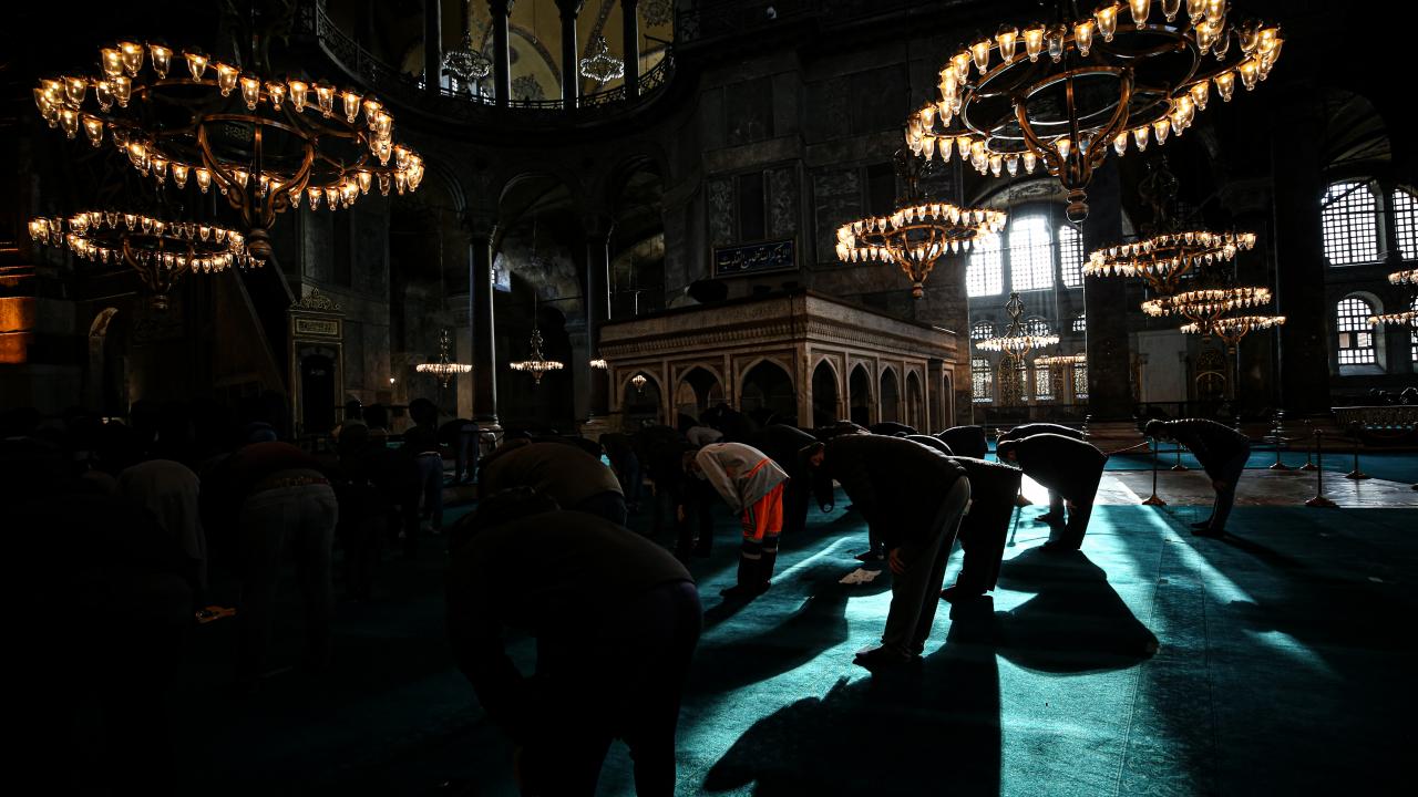 Ayasofya Camii, tam bir yıl önce cuma namazıyla,
