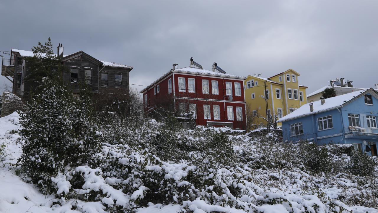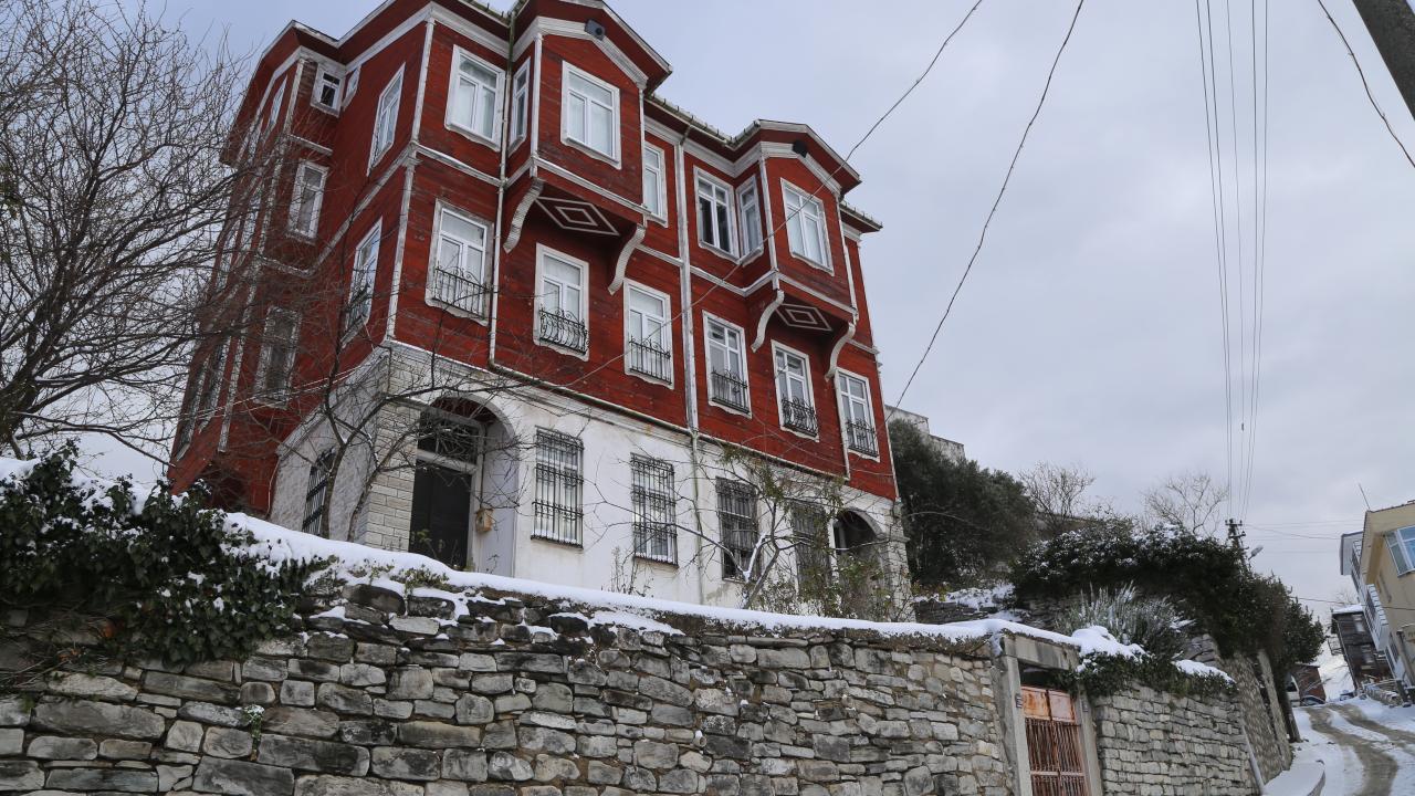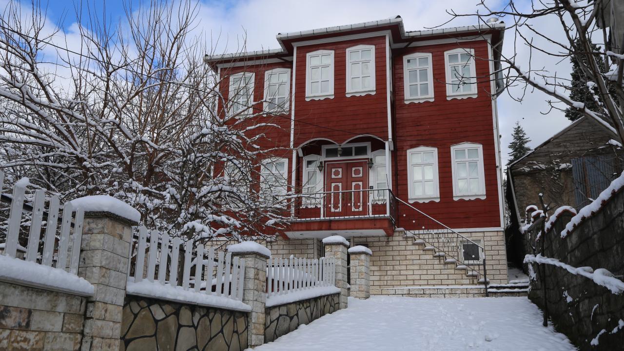 İnebolu`nun kırmızı aşı boyalı tarihi ahşap evleri de karla kaplandı.