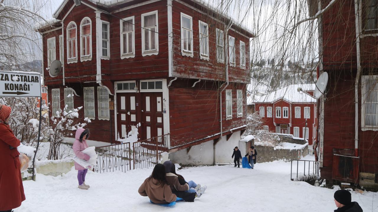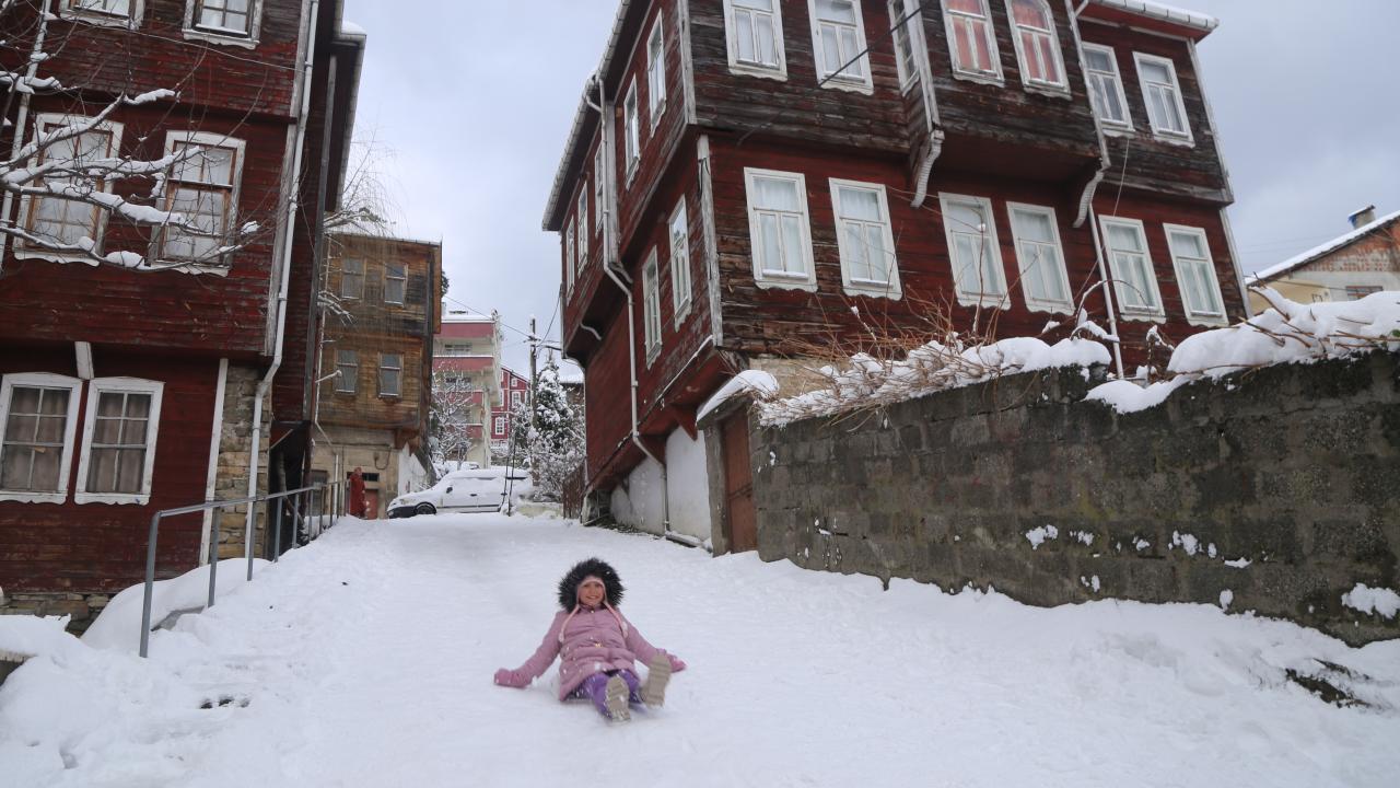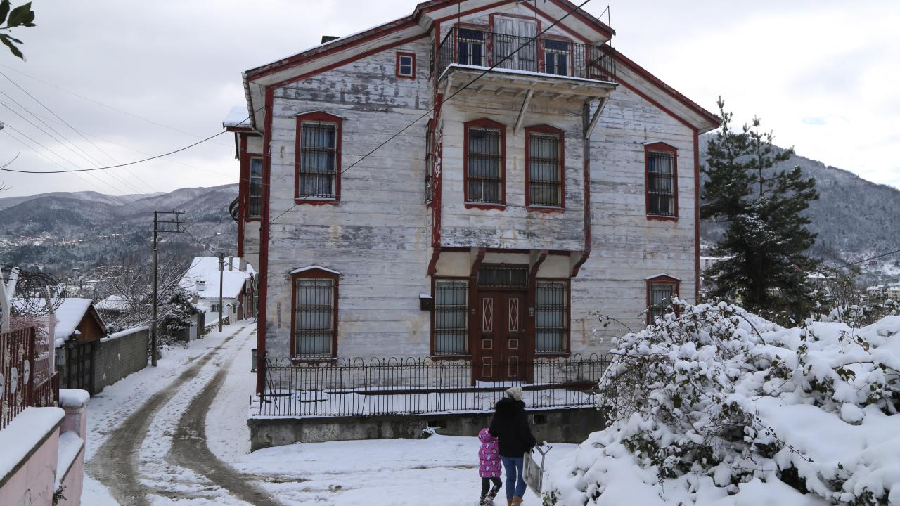 Türkiye'nin tek İstiklal Madalyalı ilçesi olan İnebolu'da tarihi ahşap evler, kar yağışıyla beyaza büründü.
