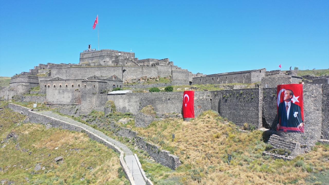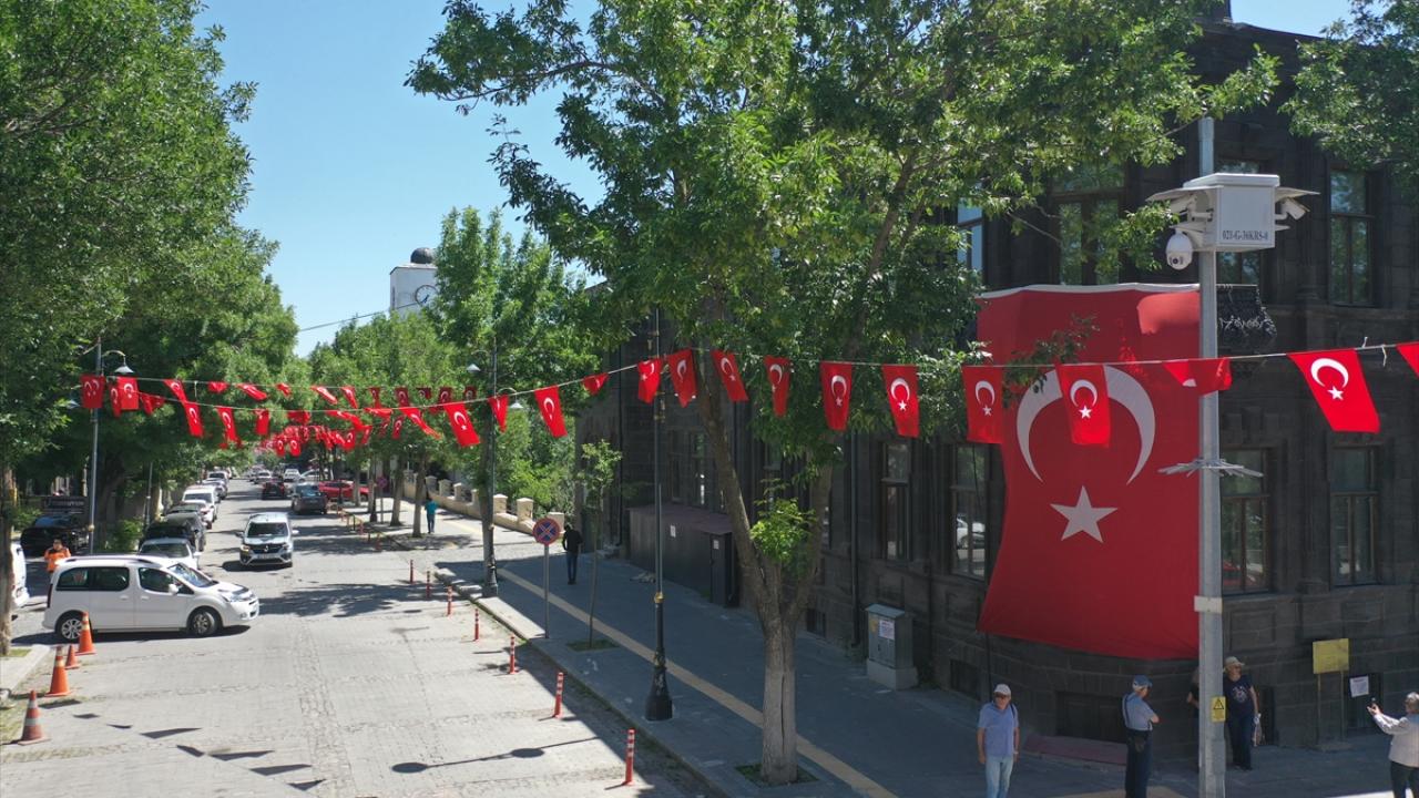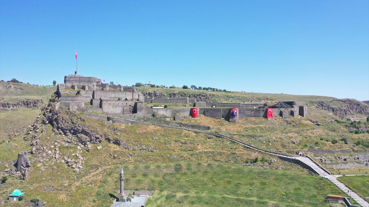 Tarihi Kars Kalesi, Valilik, Belediye, Defterdarlık ile caddeler Türk bayraklarıyla donatıldı.