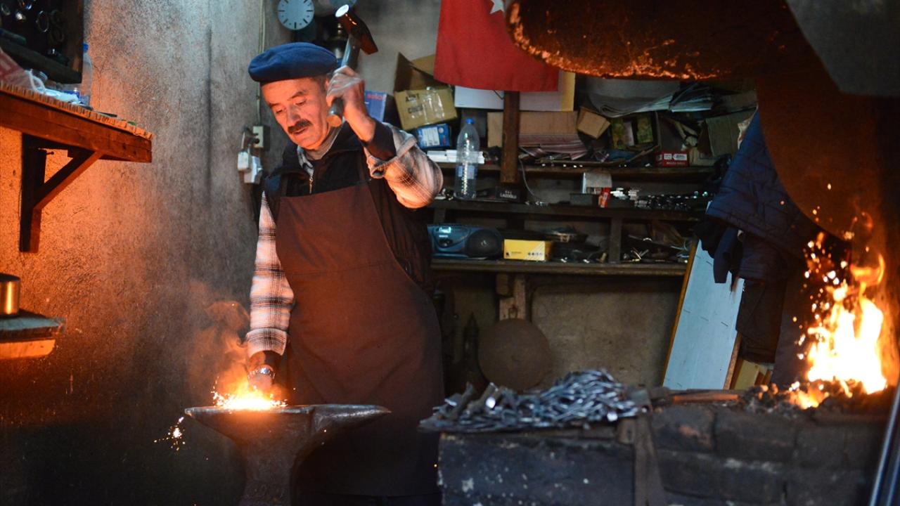 Zamanla kendisini geliştirerek kilit işinde ustalaşan Özdemir, 44 yıldır ocak başında çekiç sallayarak tarihi evlere kilit üretiyor.