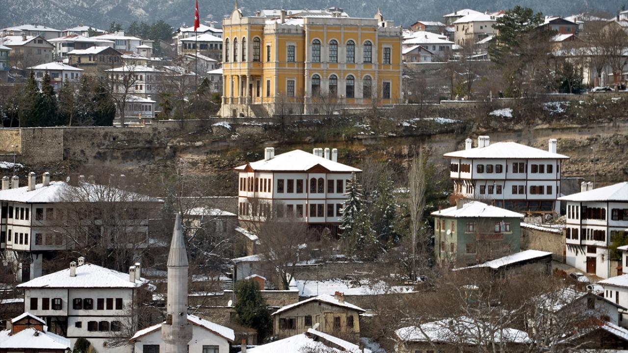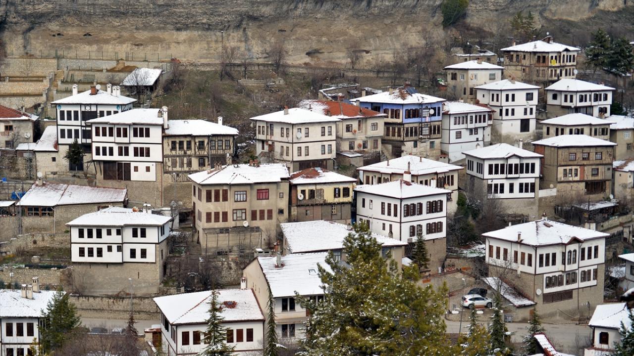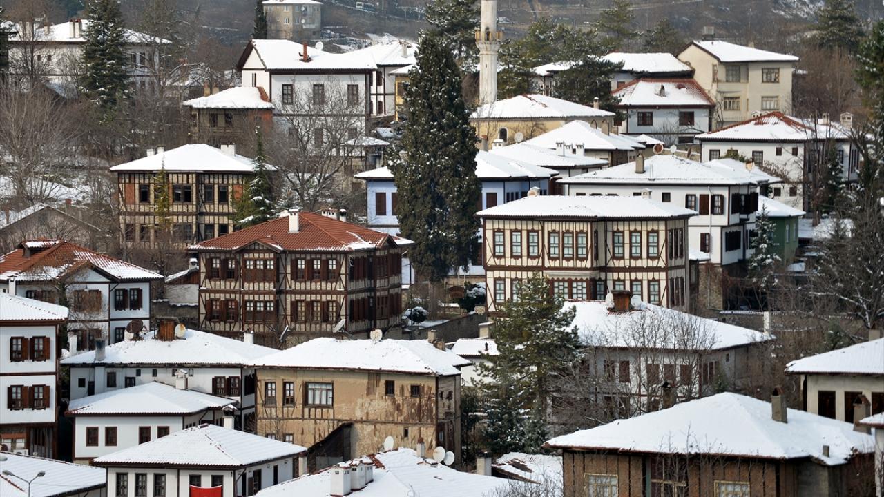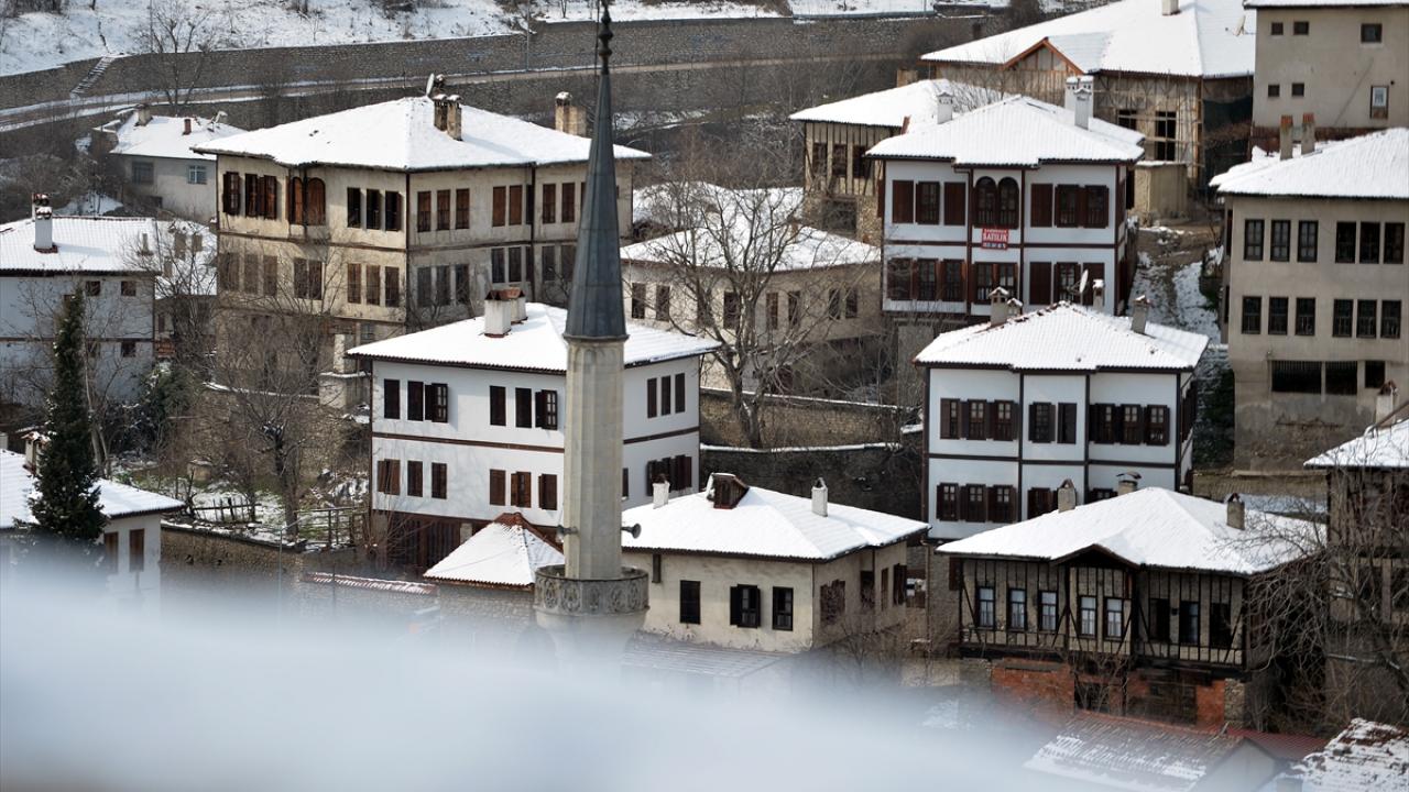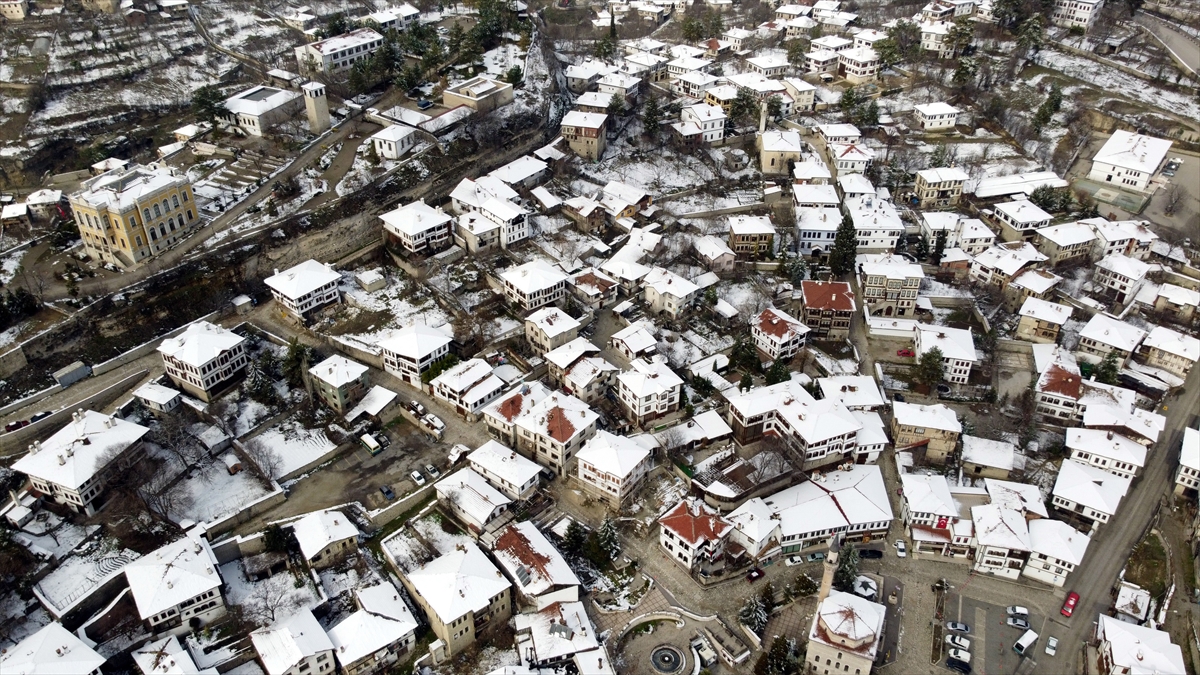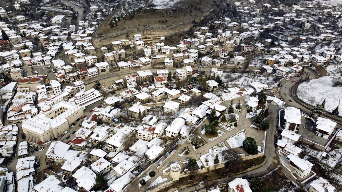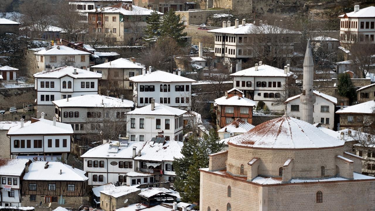 "Korumanın Başkenti", "Müze Kent" gibi unvanlarla da anılan Safranbolu`da beyaz örtüyle kaplanan tarihi yapılar, ilçeye hakim tepedeki Hıdırlık Seyir Terası`ndan güzel manzara oluşturdu.