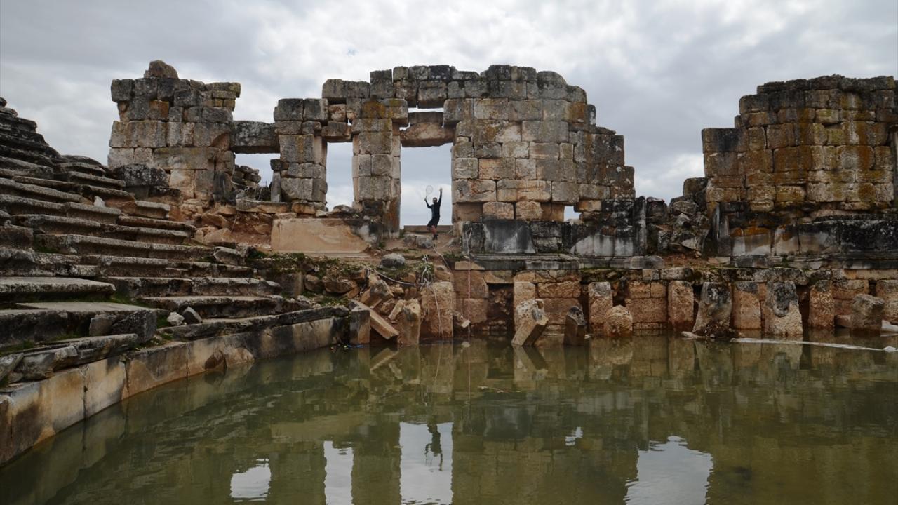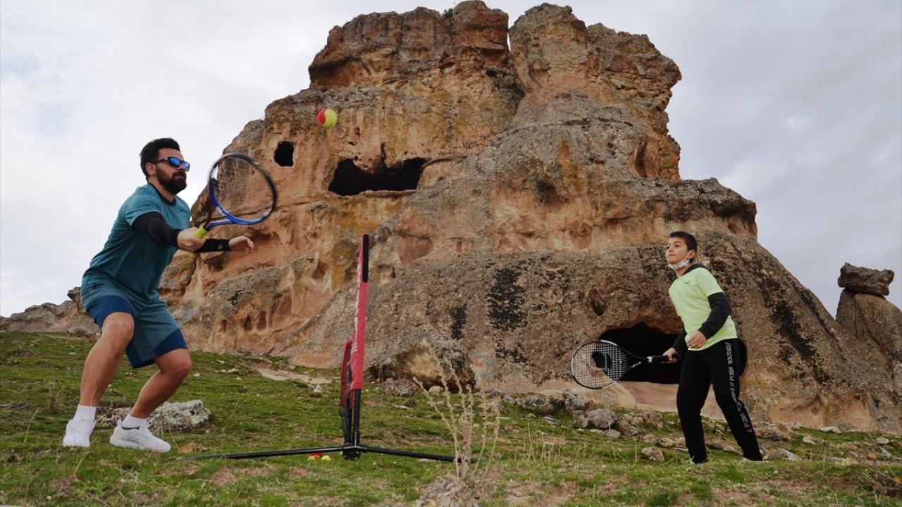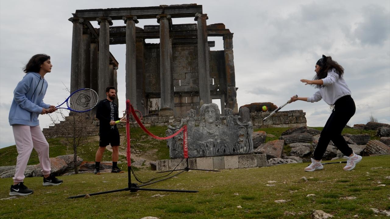 Tarihi alanlarda insanların dikkatini çekmeyi başaran Kaya ve öğrencileri, zaman zaman vatandaşlarla da tenis oynuyor.