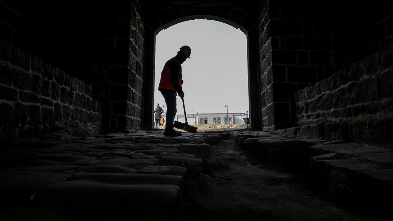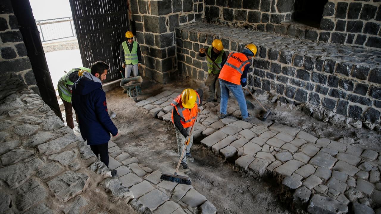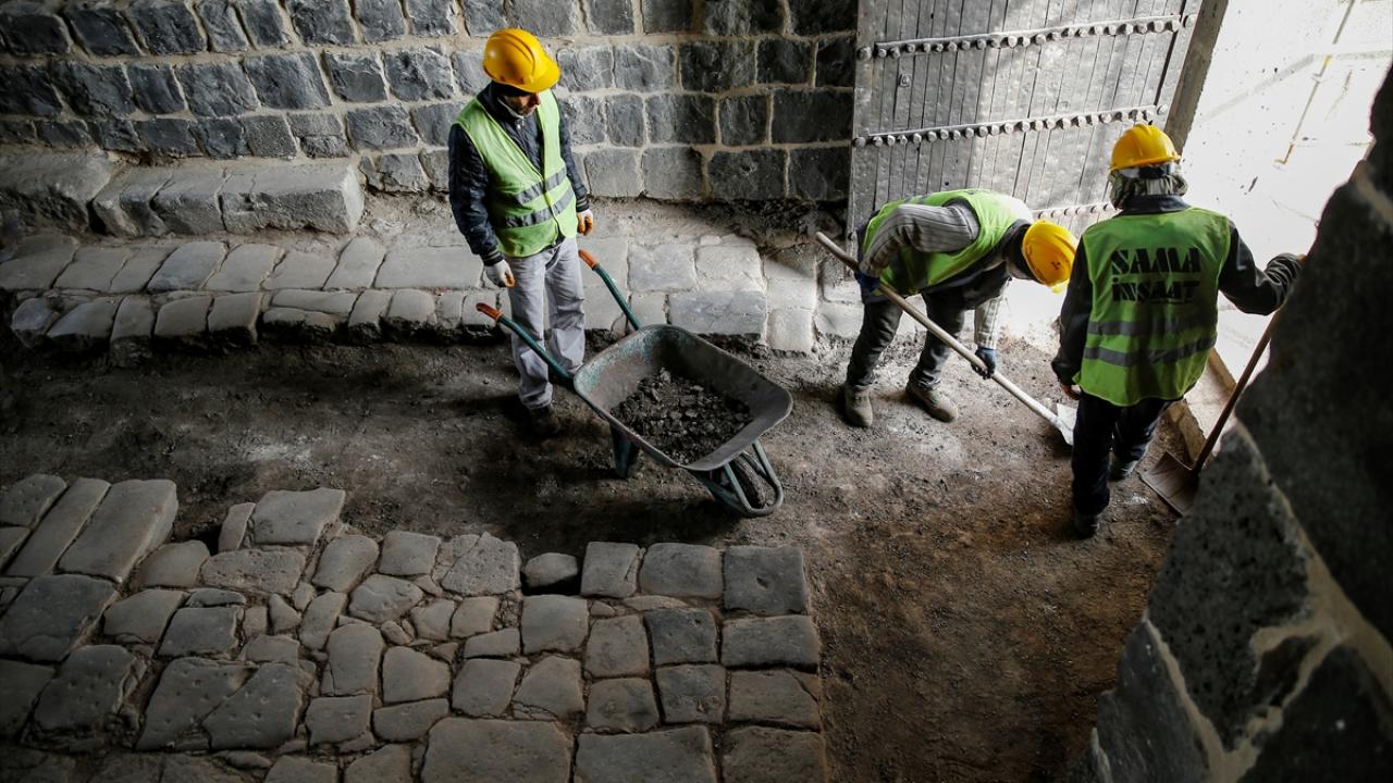 Büyükşehir Belediyesince düzenlenen ihaleyle Sur ilçesinde yapılan restorasyonun 5. etap çalışmalarında ortaya çıkarılan, Roma dönemine ait olduğu düşünülen 1700 yıllık taş döşemelerle ilgili çalışma yürütülüyor.