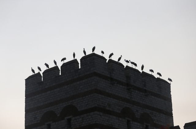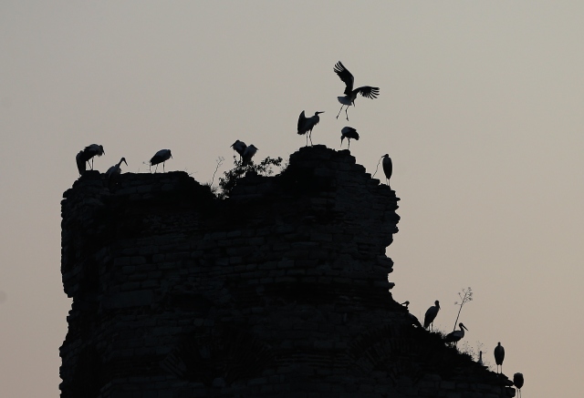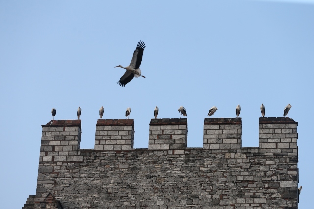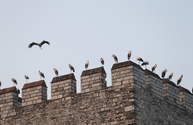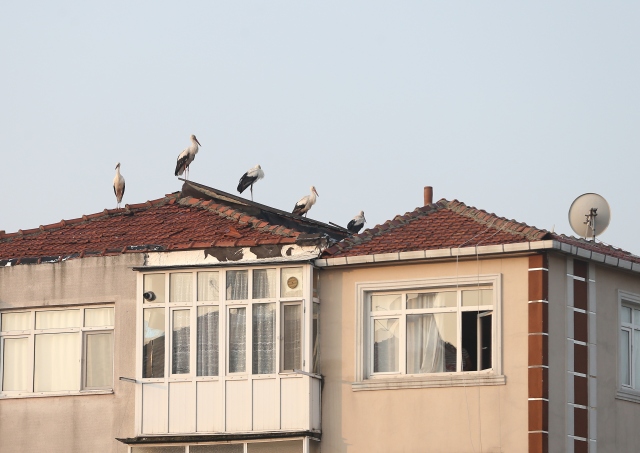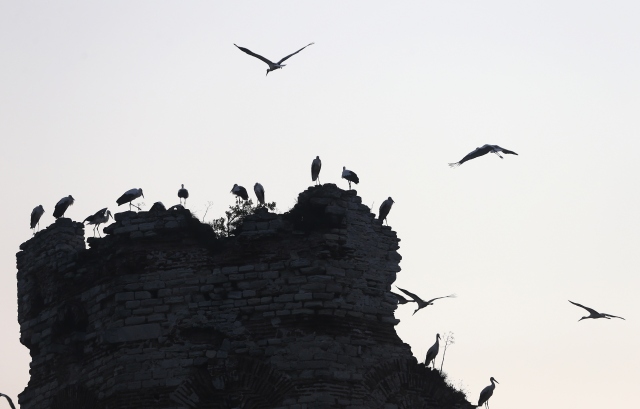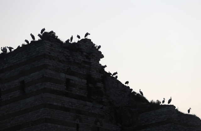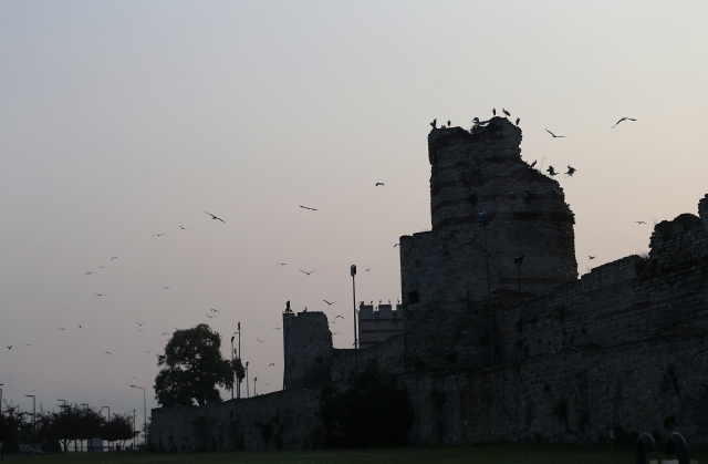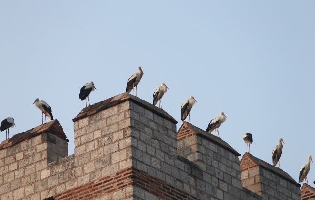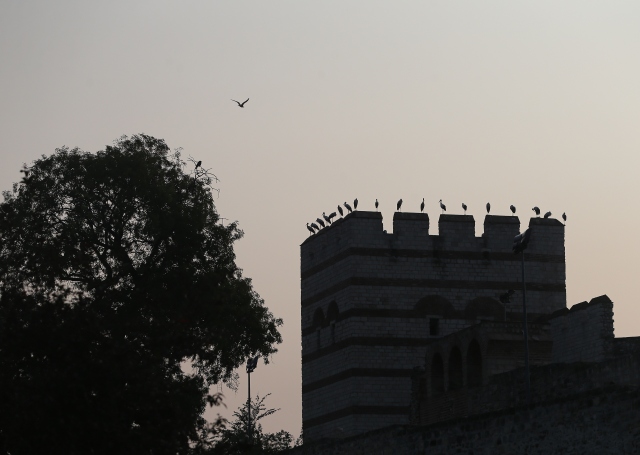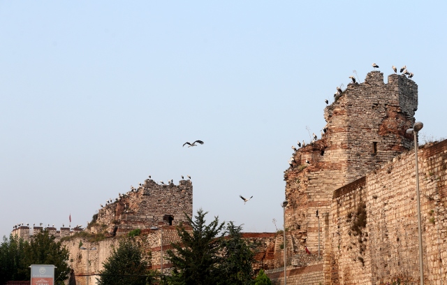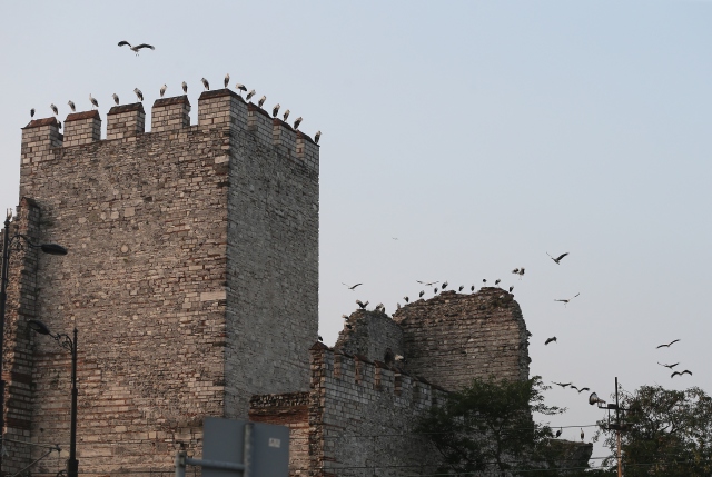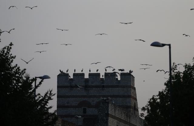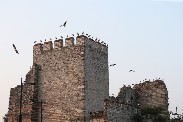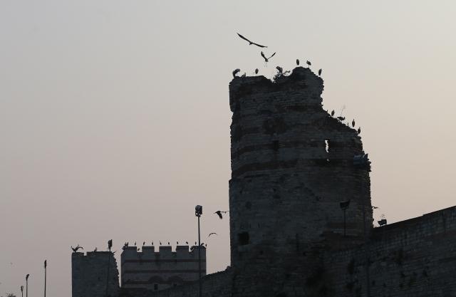 İstanbul Fatih'te bulunan tarihi surlarda yüzlerce leylek sabahın ilk ışıklarıyla güneşi karşıladı. Sabah işe gitmek için yollara düşen İstanbullular tarihi surlara, evlerin çatılarına ve elektrik direklerine tünemiş leyleklerin sürpriziyle karşılaştı.