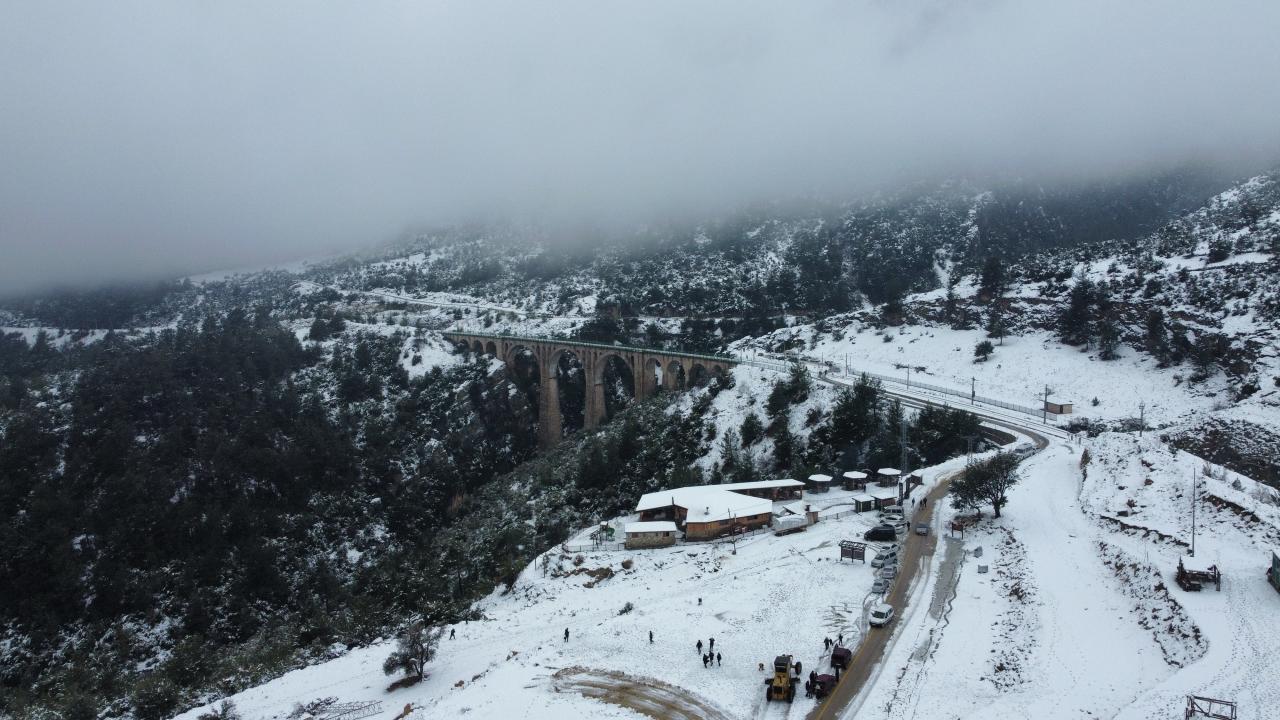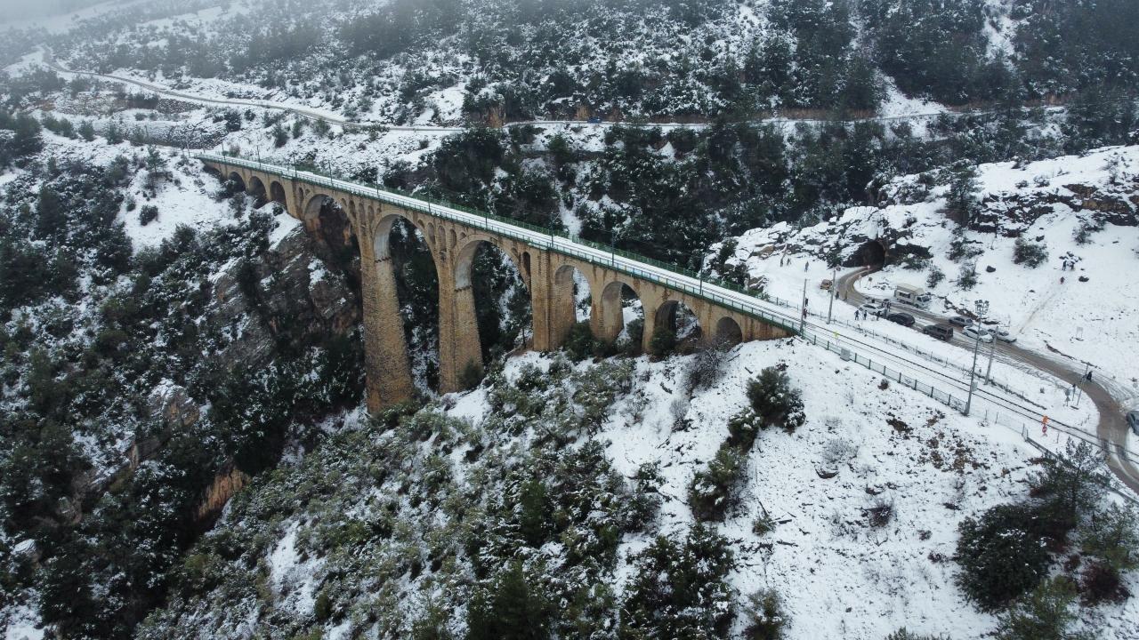 Yurt içi ve yurt dışından turistler ve fotoğrafçıların bölgedeki başlıca gezi noktaları arasında ilk sırada yer alan tarihi köprü, kışın da masalsı görüntüler veriyor.