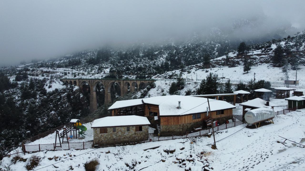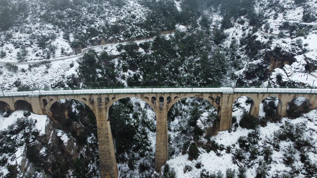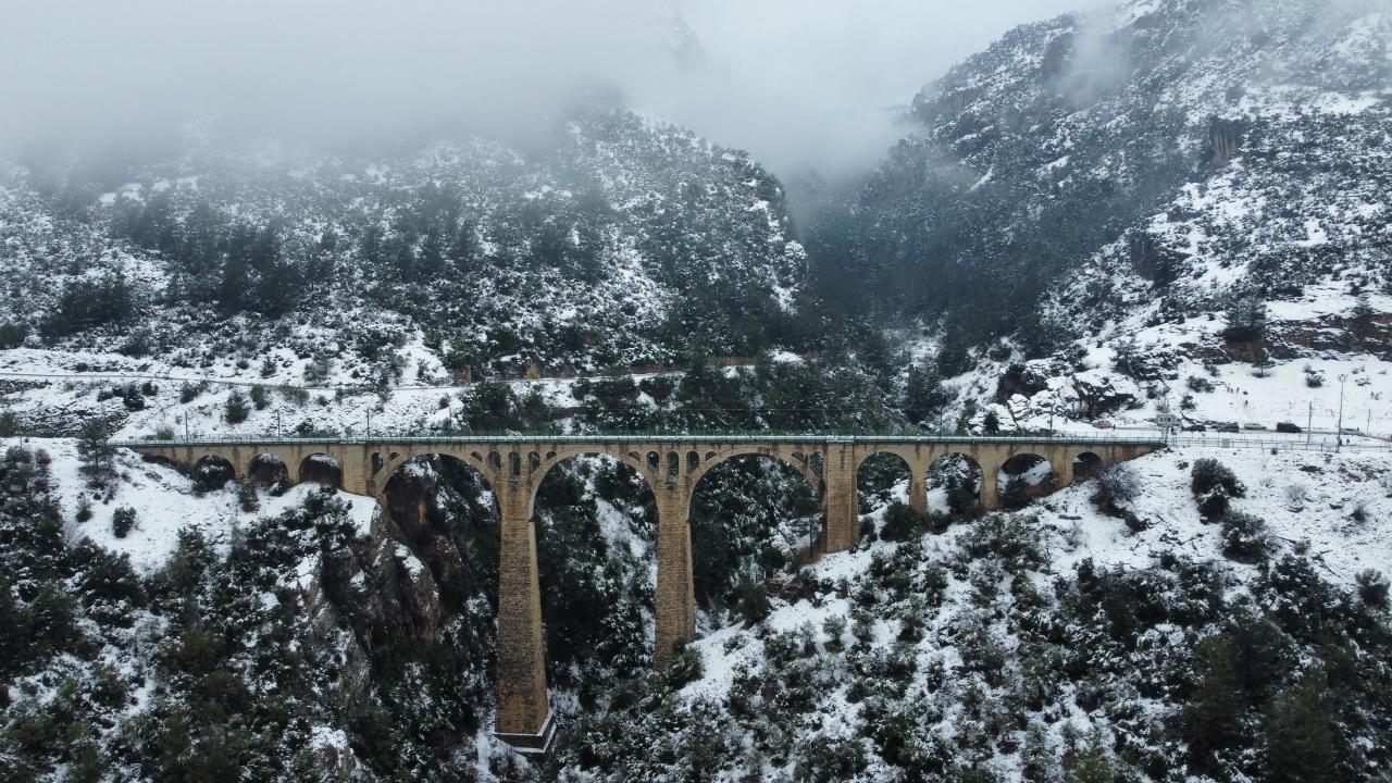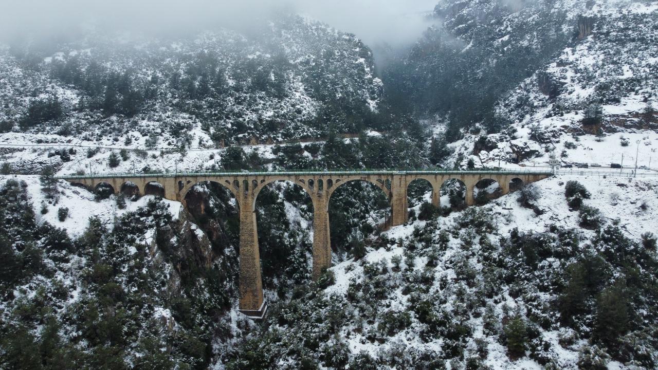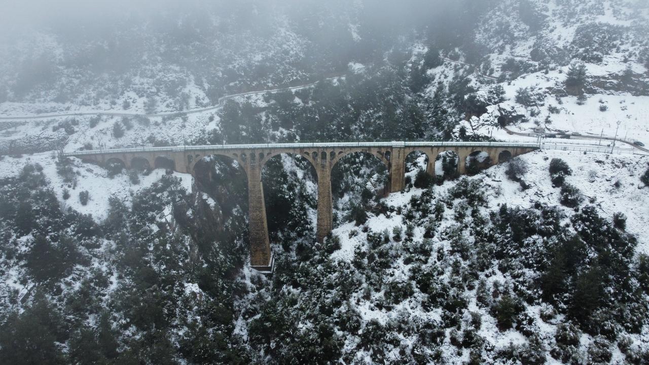 Türkiye genelinde yoğun kar yağışının devam ettiği günlerde doğa fotoğrafçısı Osman Demirden tarafından dronla görüntülenen Varda Köprüsü, beyaza bürünen çevresi ve sis altındaki manzarası ile adeta göz kamaştırdı.