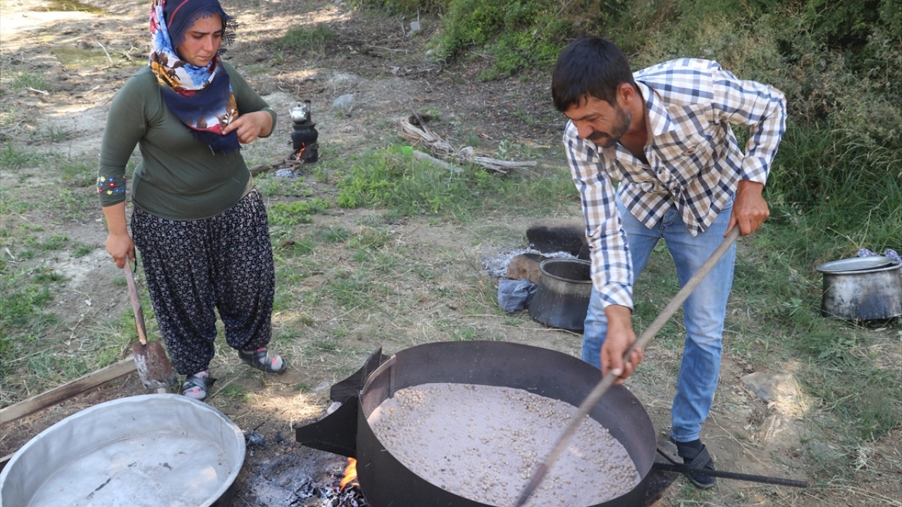 Ardından 9 numara elekten geçirilen nohutlar, yabancı maddelerden ve kırık olanlardan arındırılarak leblebi yapımı için meşe külü içeren tuzlu su içerisinde haşlanıyor.