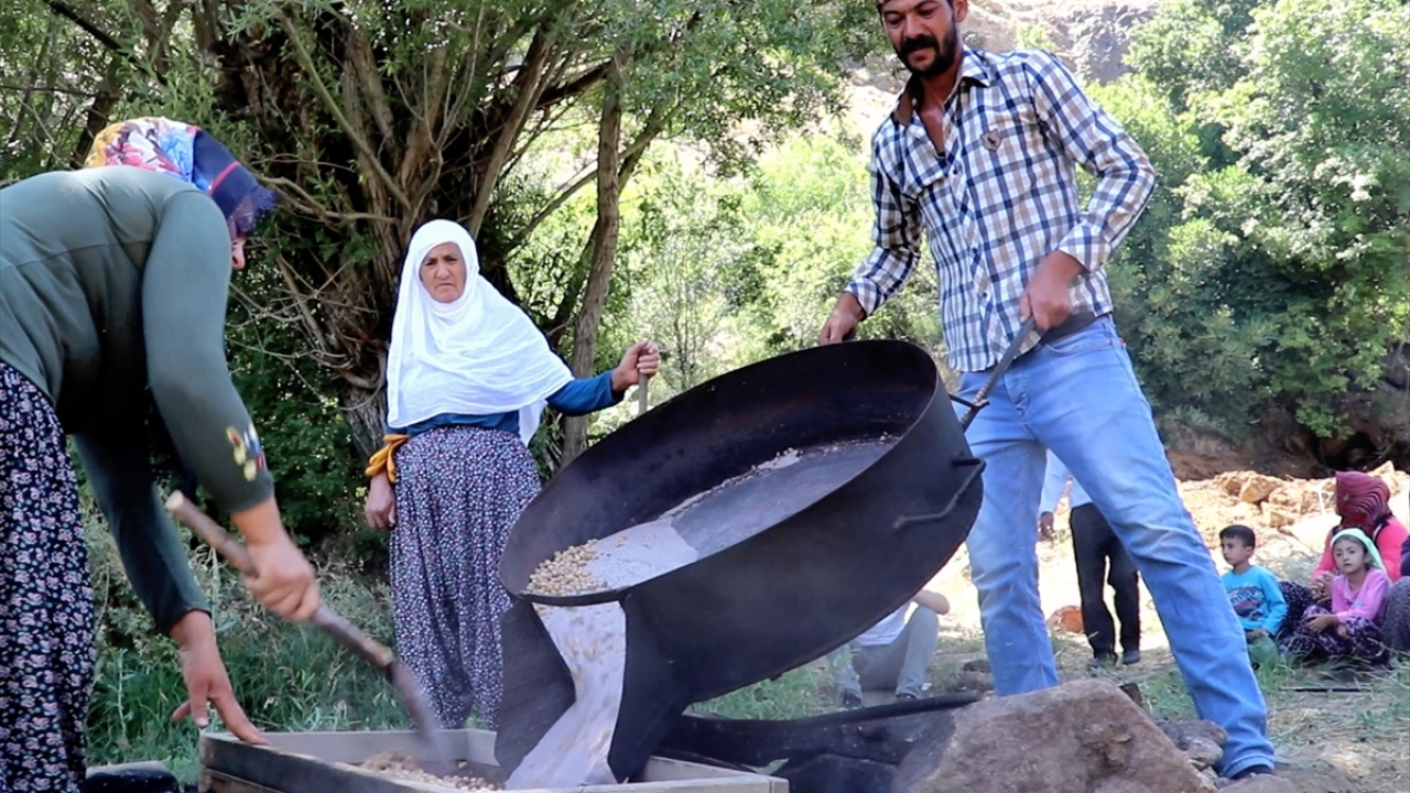 Elazığ'ın Ağın ilçesinde, tarladan elle hasat edilen nohutun evlerde meşe külüyle haşlanıp, odun ateşinde yöreye has kumda kavrulmasıyla imal edilen "Ağın leblebisi", damakları tatlandırıyor.