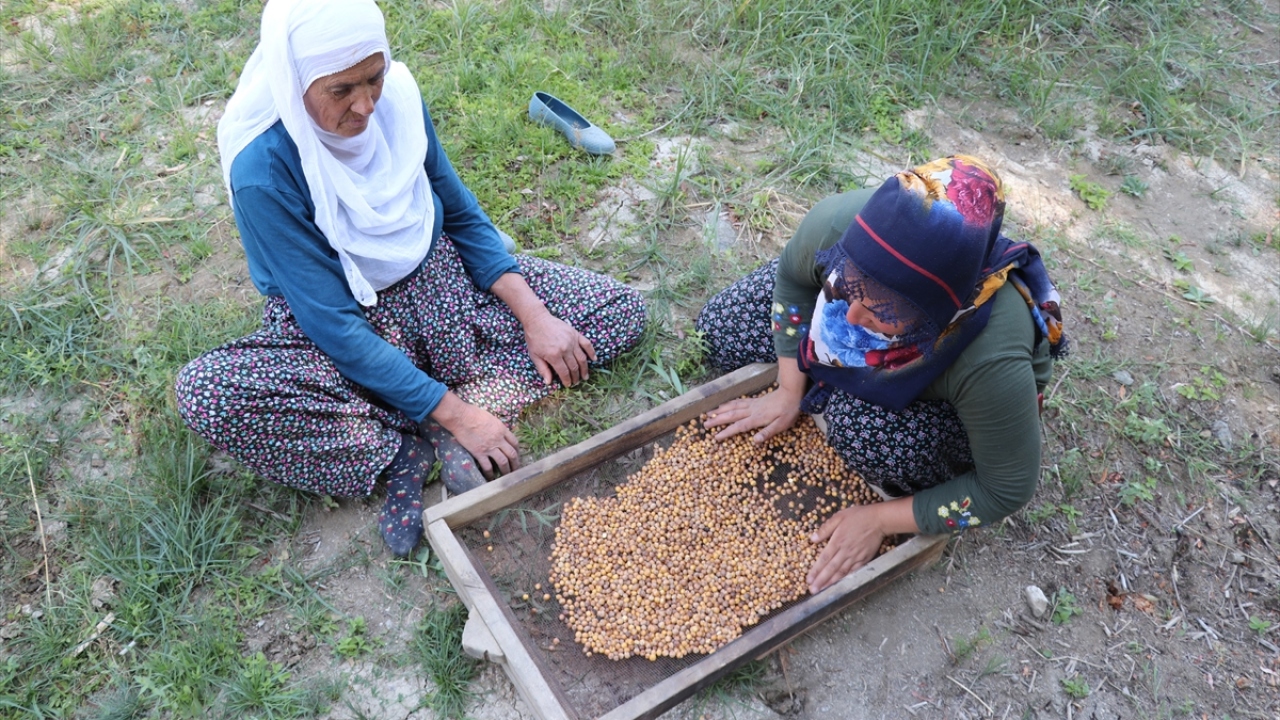 Yapılan tanıtımlarla yurt dışından da talep gören, coğrafi işaret tesciline sahip bu lezzet için yazın çocuklarıyla elle hasat ettikleri nohutu harman yerinde toplayan aileler, tamamen kuruması için bir süre tarlada bekletiyor, daha sonra patos makinesinde tanelerine ayırıyor.