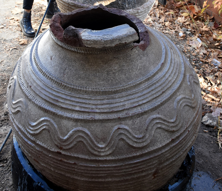 Jandarma nezaretinde arkeologlar tarafından çıkarılan ve altı kırık olan küp, Kırıkkale Kültür ve Turizm Müdürlüğüne getirildi.