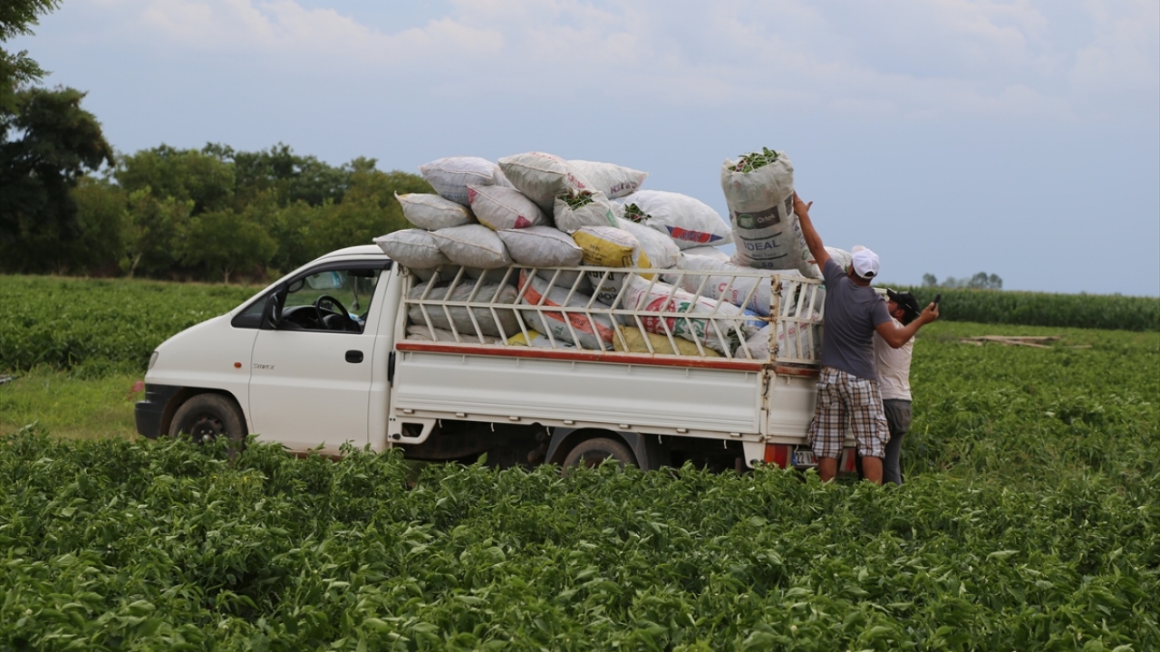 Ule, "Bu yıl verim çok iyi. Yağmura denk gelmeden hasadımıza başladık. Edirne, tava ciğerinin başkenti ancak `ciğer` denince de akla biber geliyor. Turistler ciğer istediğinde dünyanın en tatlı acısını da soruyor. Biberimizin tohumu da kendisi de patentlidir, dünyada sadece Karaağaç`ta yetişiyor." şeklinde konuştu.