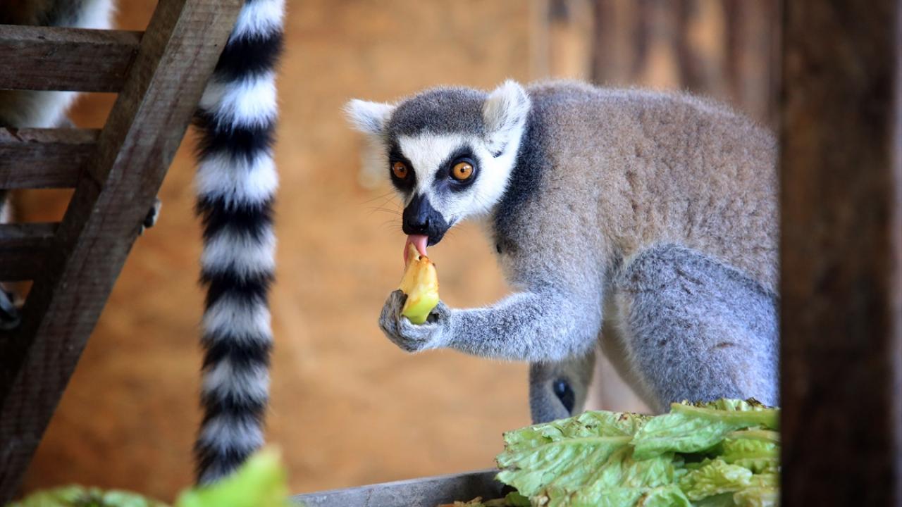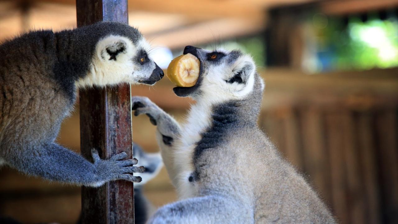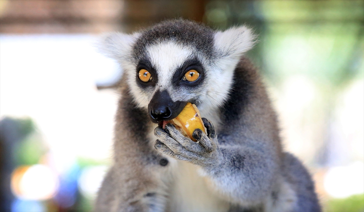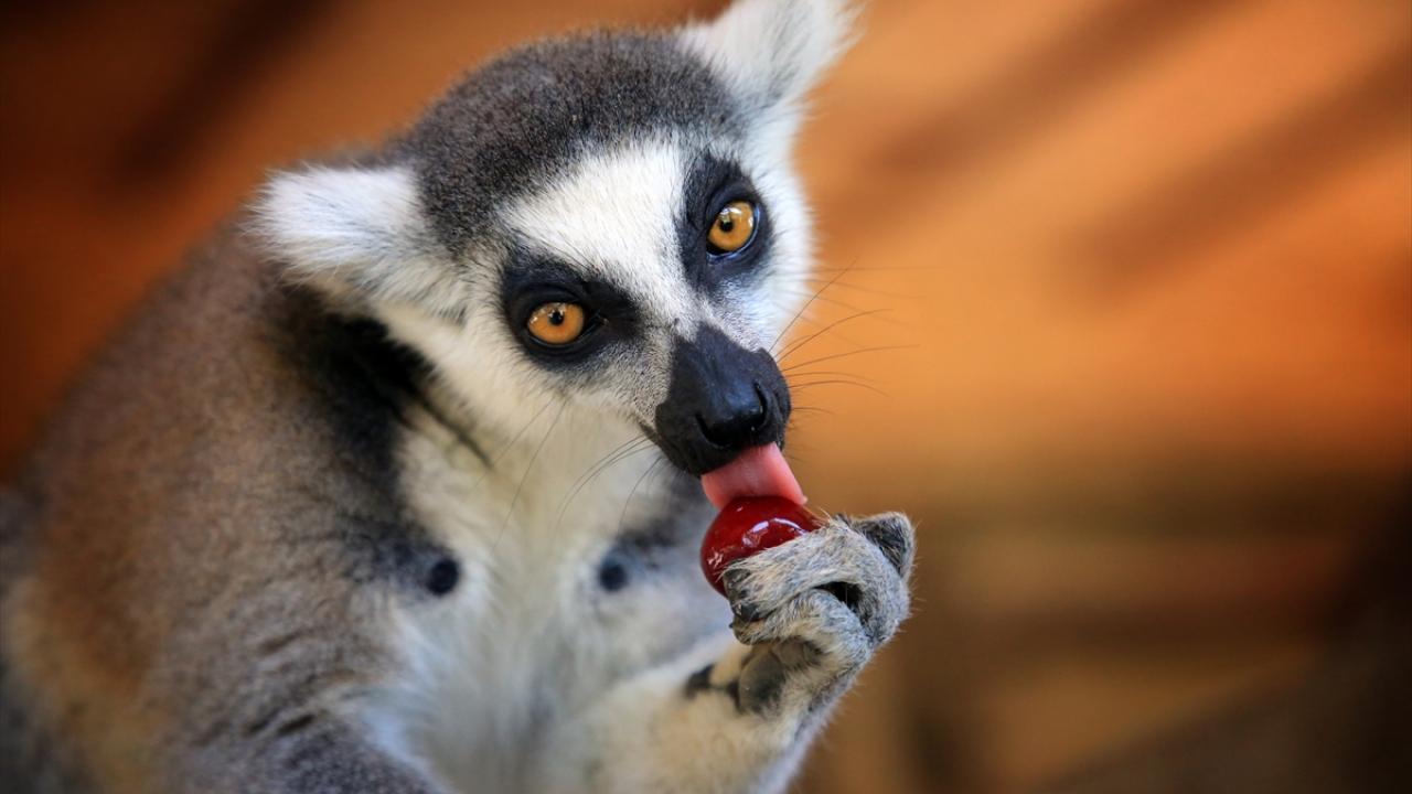 Parktaki ayı, lemur ve maymunlara karpuz veriliyor. Hayvanlar elma, portakal, kivi, çilek, muz ve üzümden oluşan buzlu meyve kokteyli ile besleniyor.