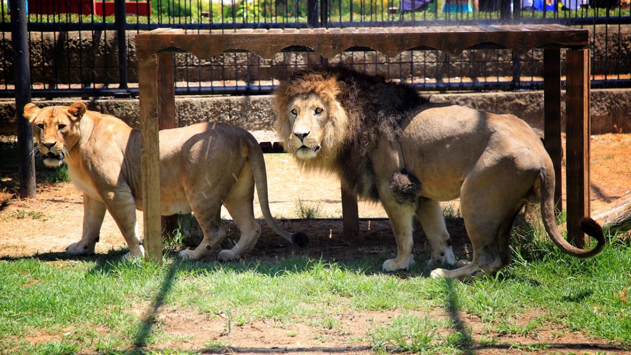 Aslan, deve ve atlar da görevlilerce günün belirli saatlerinde tazyikli su ve özel yağmurlama sistemiyle ferahlatılıyor.