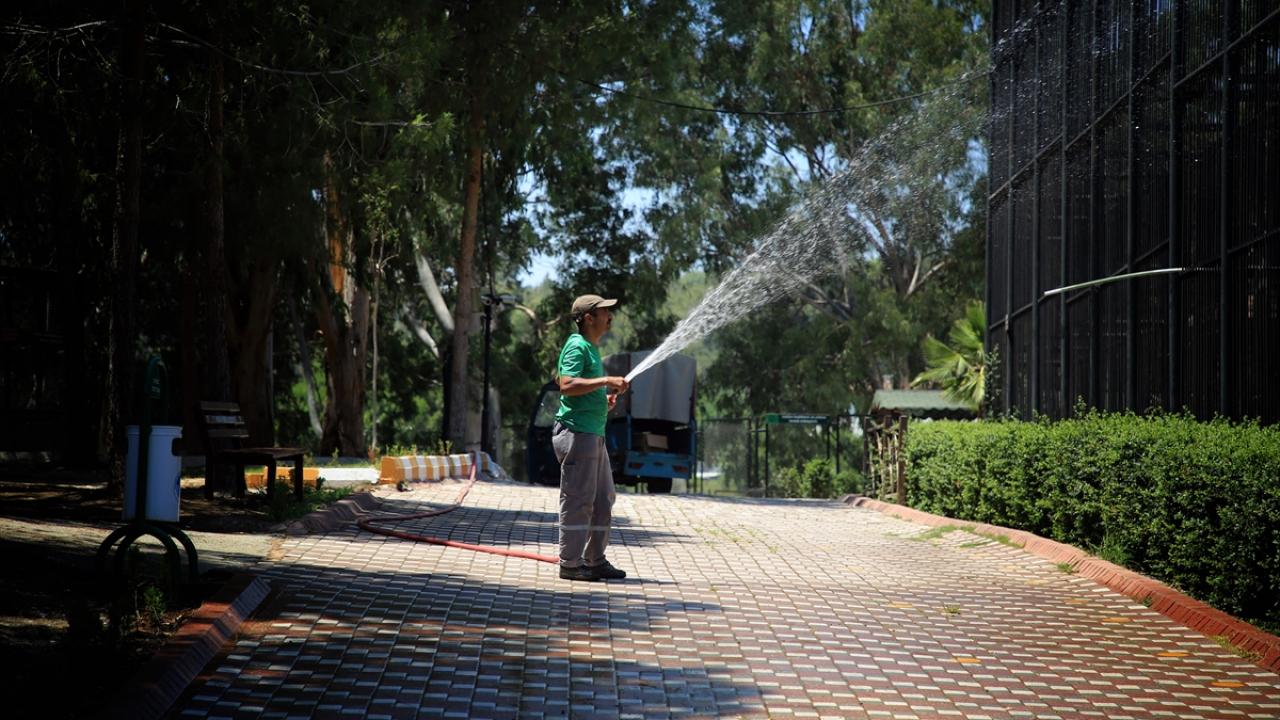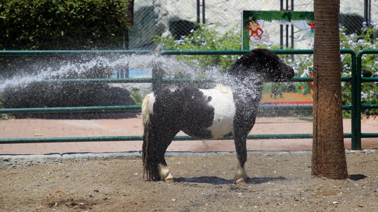 Mersin'de, Tarsus Doğa Parkı'nın sakinleri Çukurova'nın kavurucu sıcağı ve bunaltıcı neminden etkilenmemeleri için meyveli buz kokteyli ve özel sulama sistemleriyle serinletiliyor.