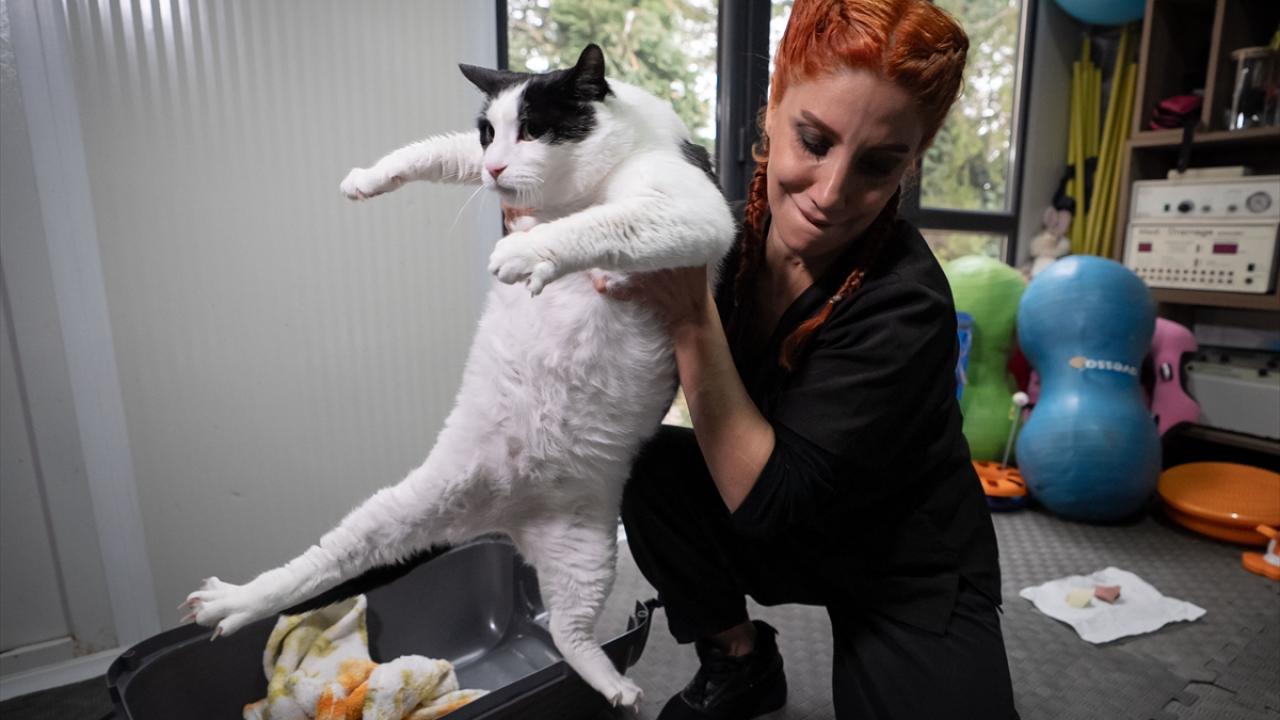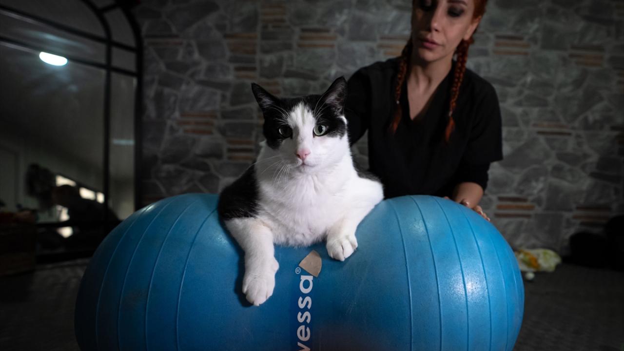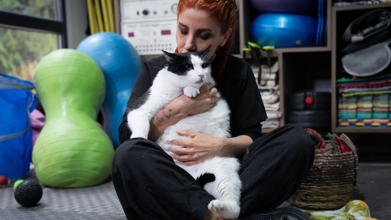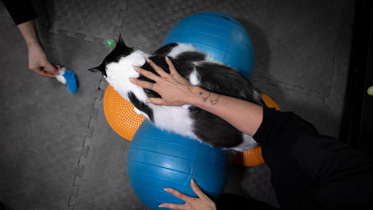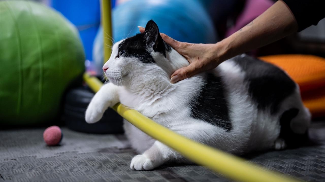 Sahibinin, veteriner fizik tedavi ve rehabilitasyon merkezine götürdüğü 8 yaşındaki kedi için veteriner hekimlerce özel bir beslenme ve egzersiz programı hazırlandı.