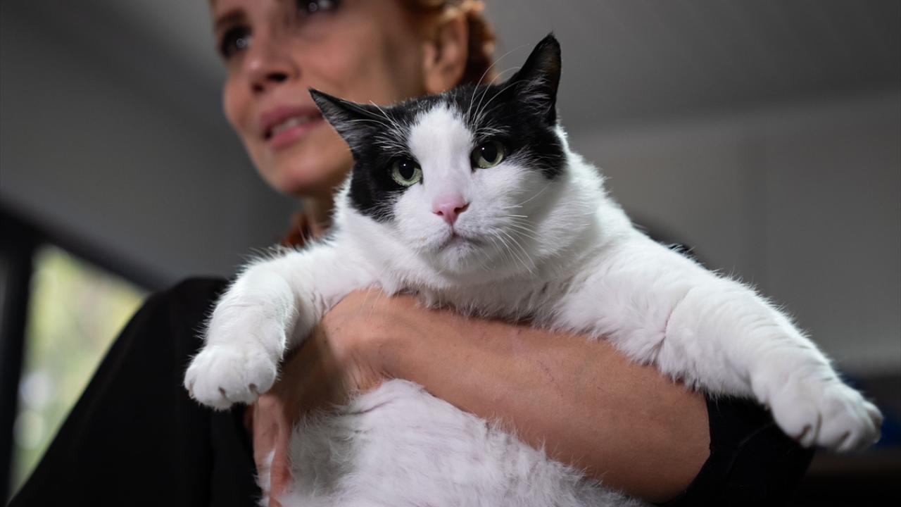 Obeziteyle mücadele eden ve yaklaşık 12 kiloya ulaşan kedi Boncuk, veteriner hekimlerin kontrolünde uygulanan diyet ve egzersiz programıyla 7 kilo vermeyi hedefliyor.