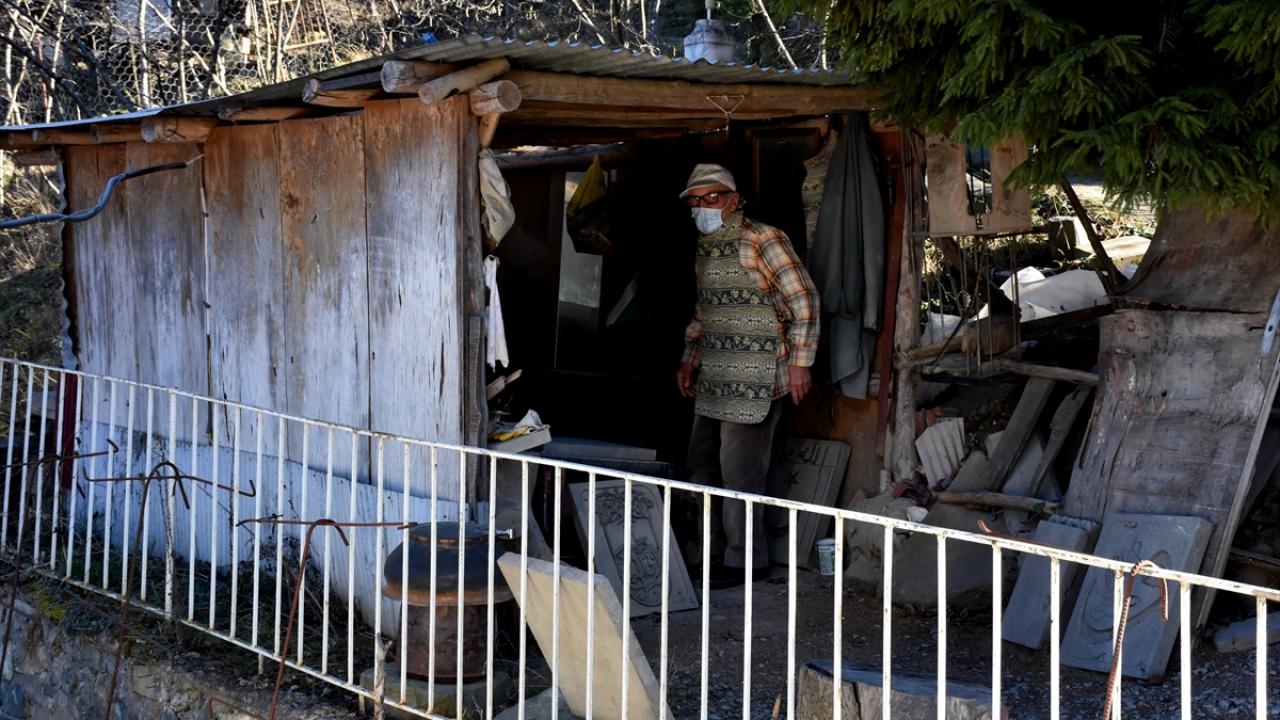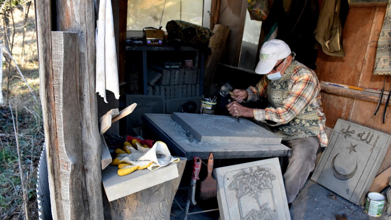 Trabzon'un Maçka ilçesinde yaşayan Yadigar Birinci, 70 yaşından sonra kendi gayretiyle öğrendiği taş oymacılığını, ilerlemiş yaşına rağmen sürdürüyor
