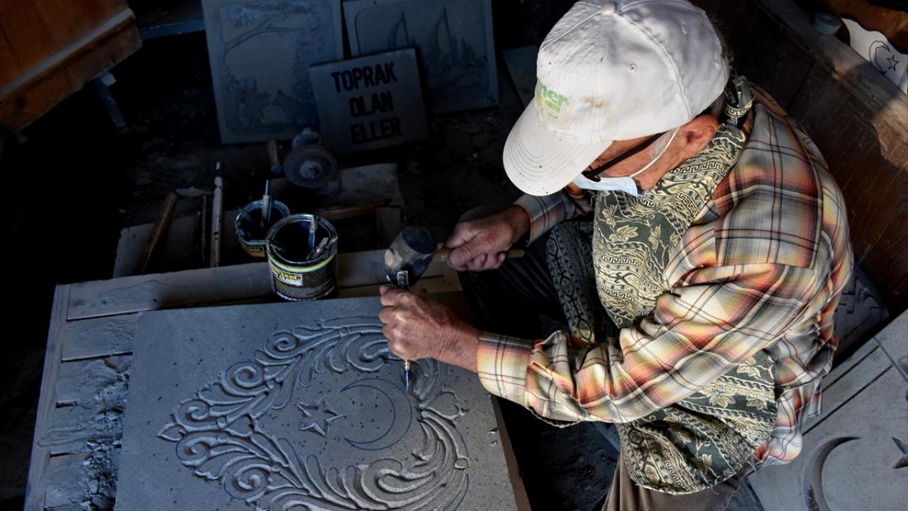 Taş oymacılığı ustası kendi mezar taşını da hazırladı