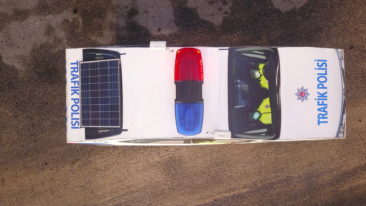 Eskişehir'de, trafik kazalarının azaltılması amacıyla bazı noktalara yerleştirilen "maket polis aracı"nın işlevini artırmak amacıyla güneş enerjili 3 boyutlu mobil maket üretildi.