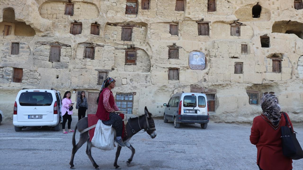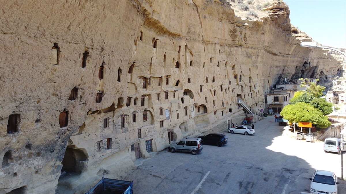 Karaman'ın Taşkale köyünde duvar gibi yükselen kayanın yontulmasıyla yapılan 350'den fazla mağaradan oluşan tahıl ambarları salgın sürecinin sona ermesinden sonra tekrar ziyaretçilerini ağırlıyor.