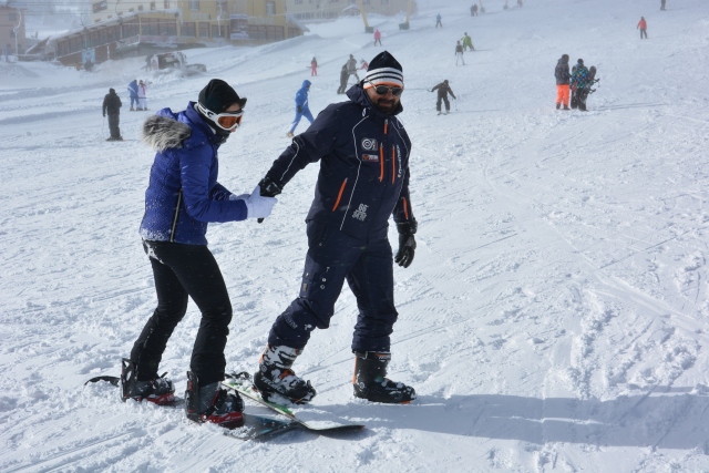 Türkiye'nin en önemli kayak ve kış turizm merkezlerinden Uludağ'da hafta sonunu fırsat bilen çok sayıda tatilci ile birlikte yerli ve yabancı turist kayak pistlerini doldurdu