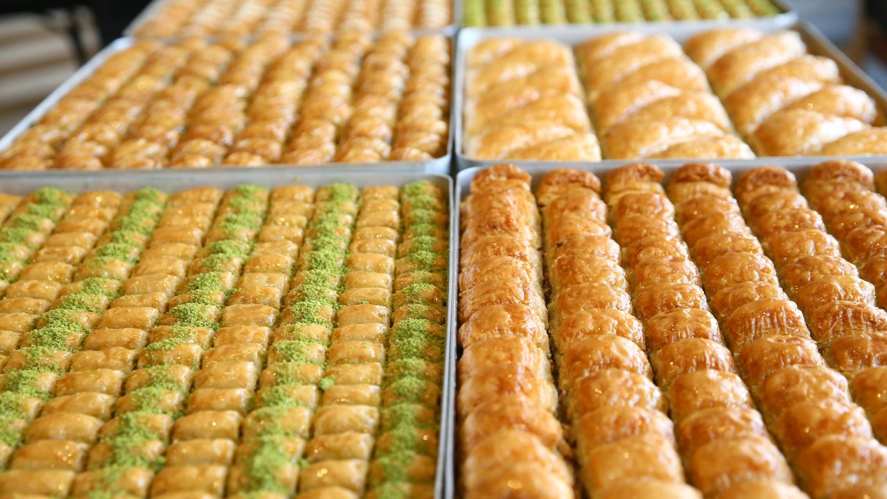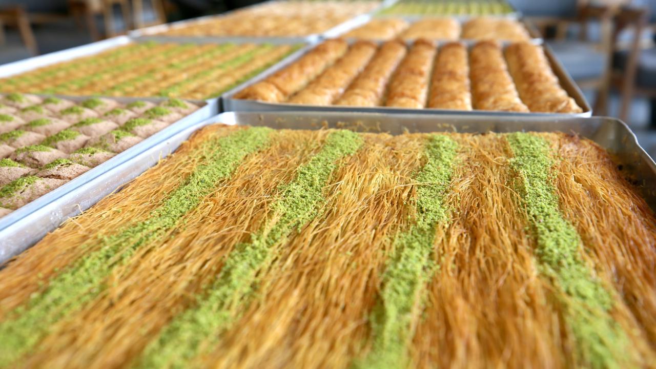 Müşterilerin siparişlerini yetiştirebilmek için vardiyalı çalışan işletme sahipleri, baklava, şekerpare, güllaç, kadayıf ve soğuk baklava gibi birçok ürünü özenle hazırlıyor.
