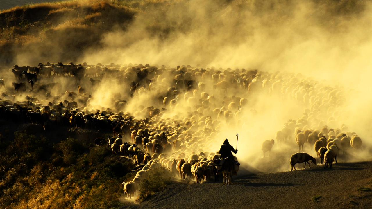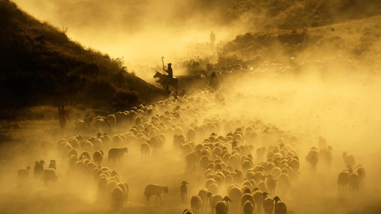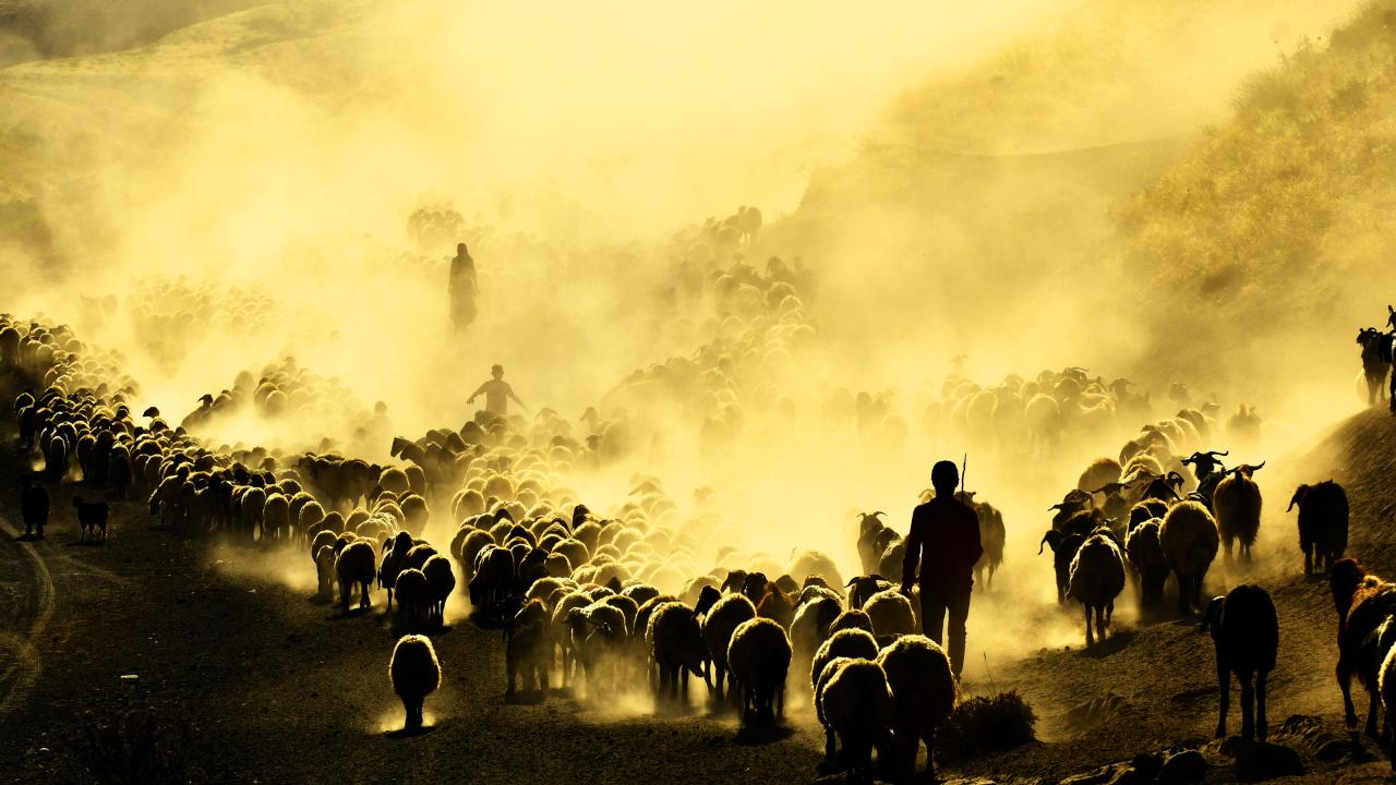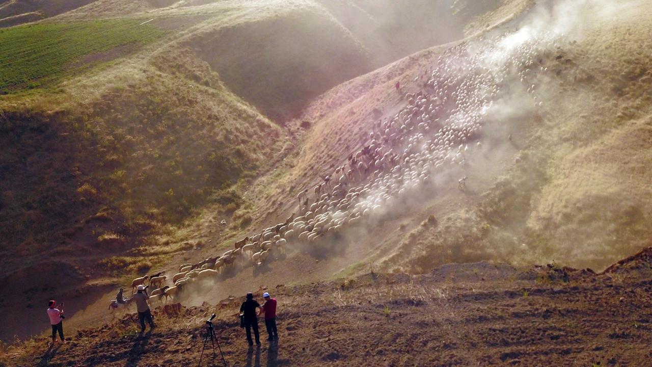 Çobanlar ve koyun sürülerinin tozlu yolculuğu fotoğrafçılardan yoğun ilgi görüyor.
