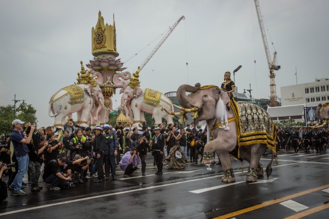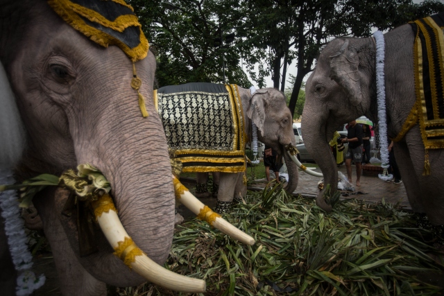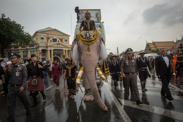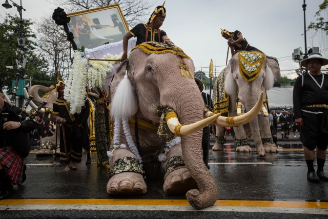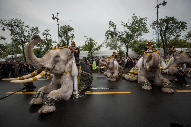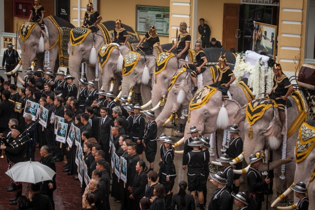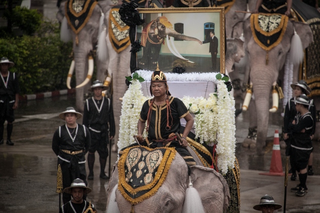 Tayland'ın başkenti Bangkok'ta 88 yaşında hayatını kaybeden Tayland Kralı Bhumibol Adulyadej'e saygı göstergesi olarak Ayuthaya bölgesinden, Grand Palace'ın önüne kadar Kraliyet filleri ile geçit töreni düzenlendi.