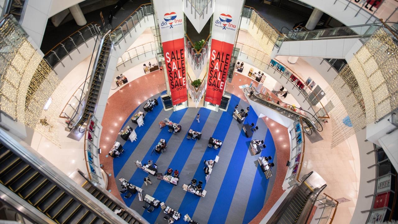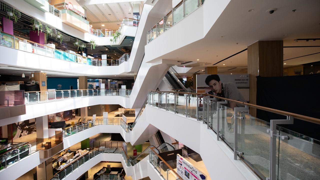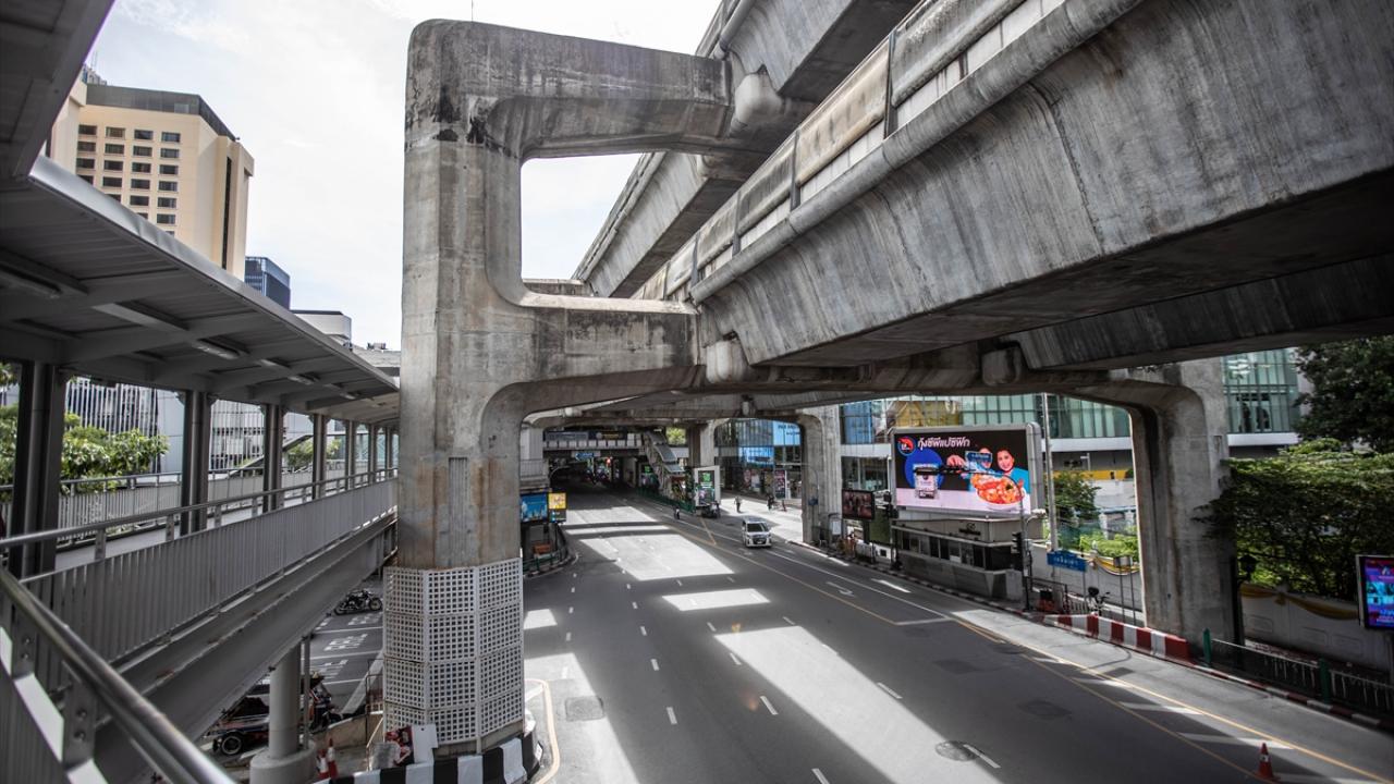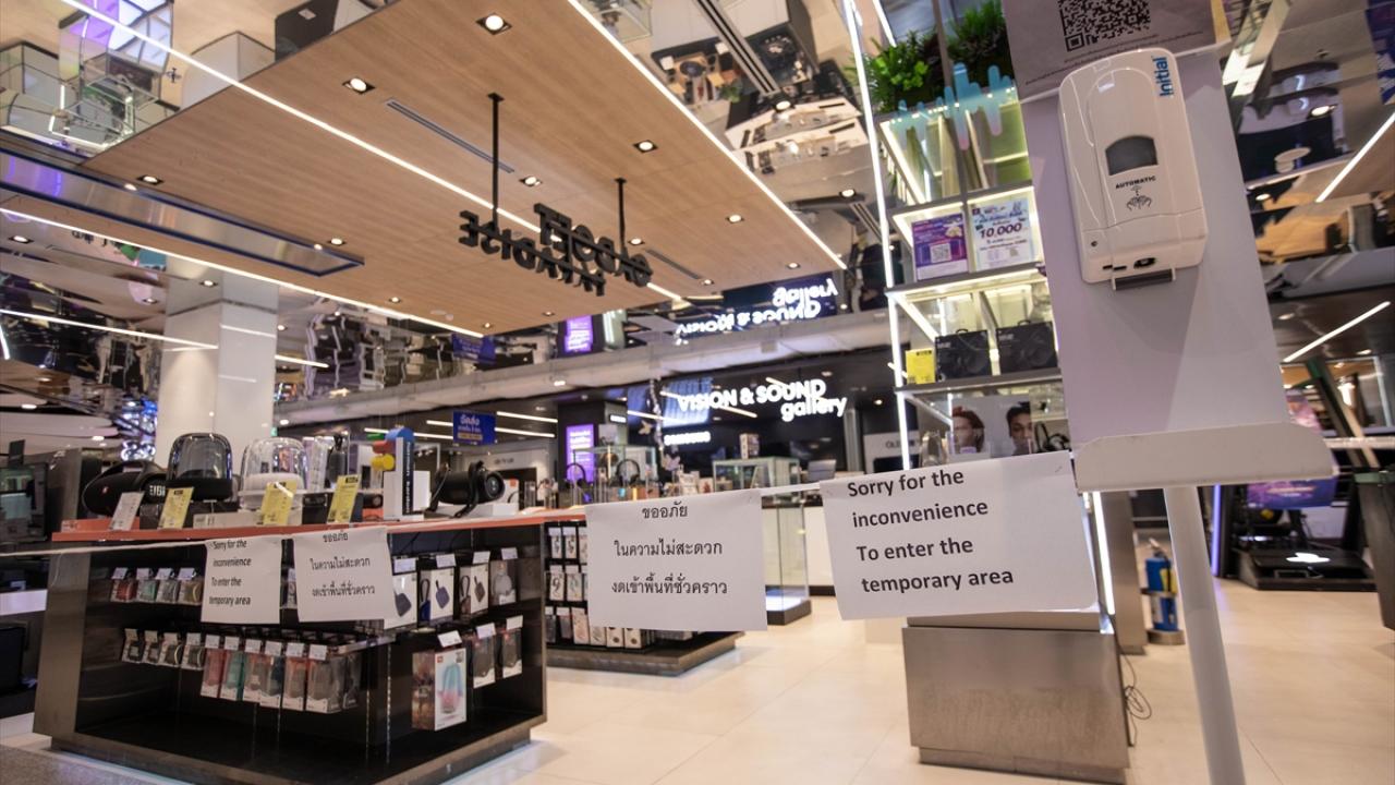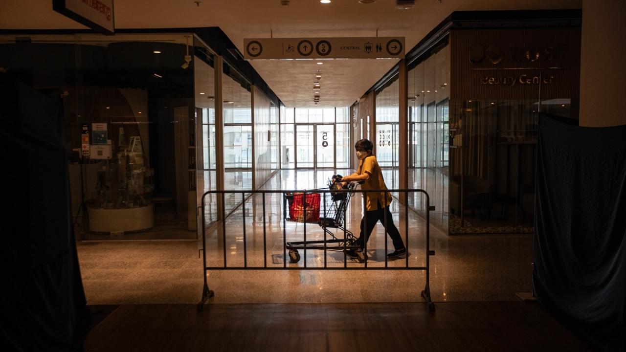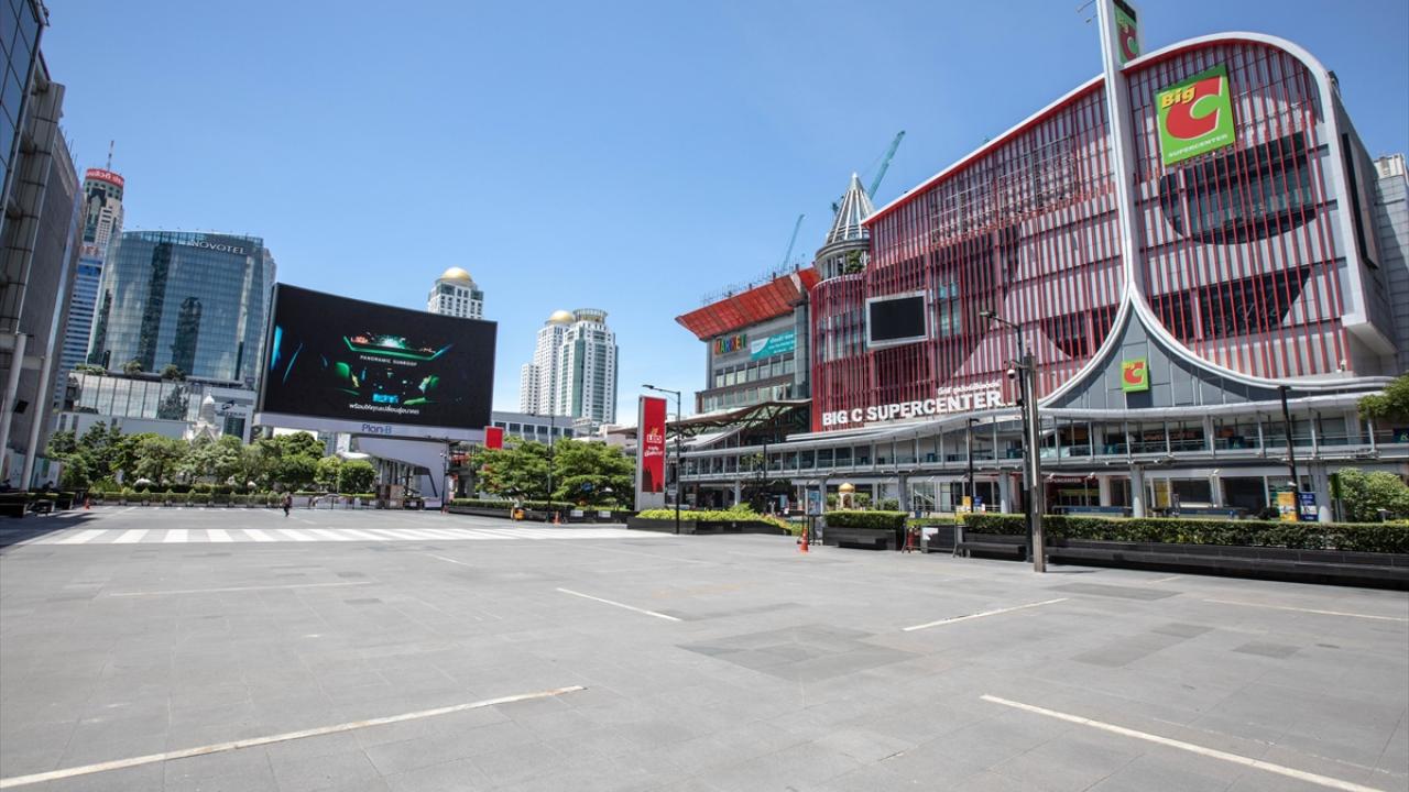 Başkent Bangkok`ta yeni tip koronavirüs (Covid-19) salgını ile mücadele kapsamında ülke genelinde uygulanan sokağa çıkma kısıtlaması nedeniyle alışveriş merkezleri kapatıldı.
