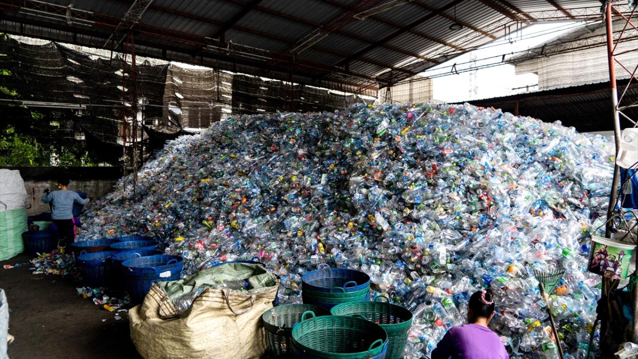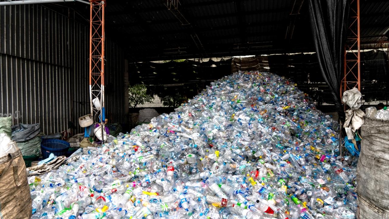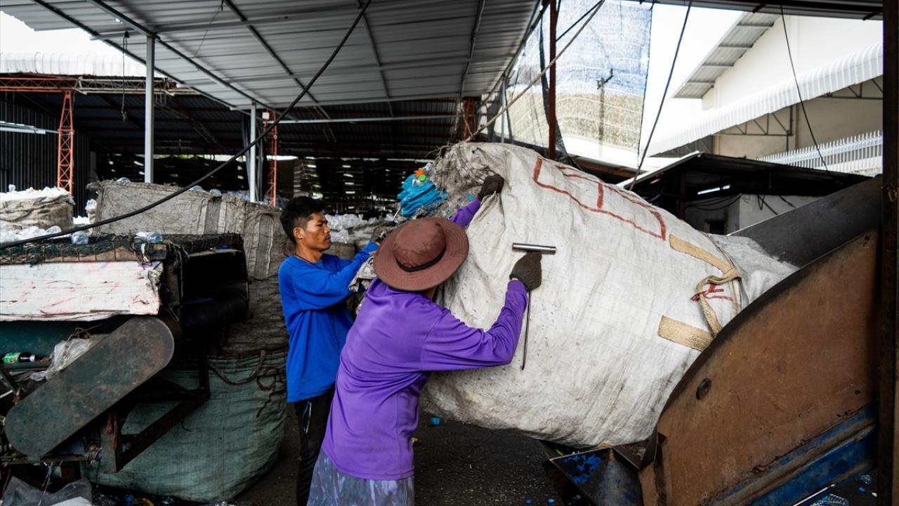 Tayland’ın Samut Prakan kentinin Bang Phli bölgesinde plastik atıkların toplanıp işlendiği geri dönüşüm merkezi görüntülendi.