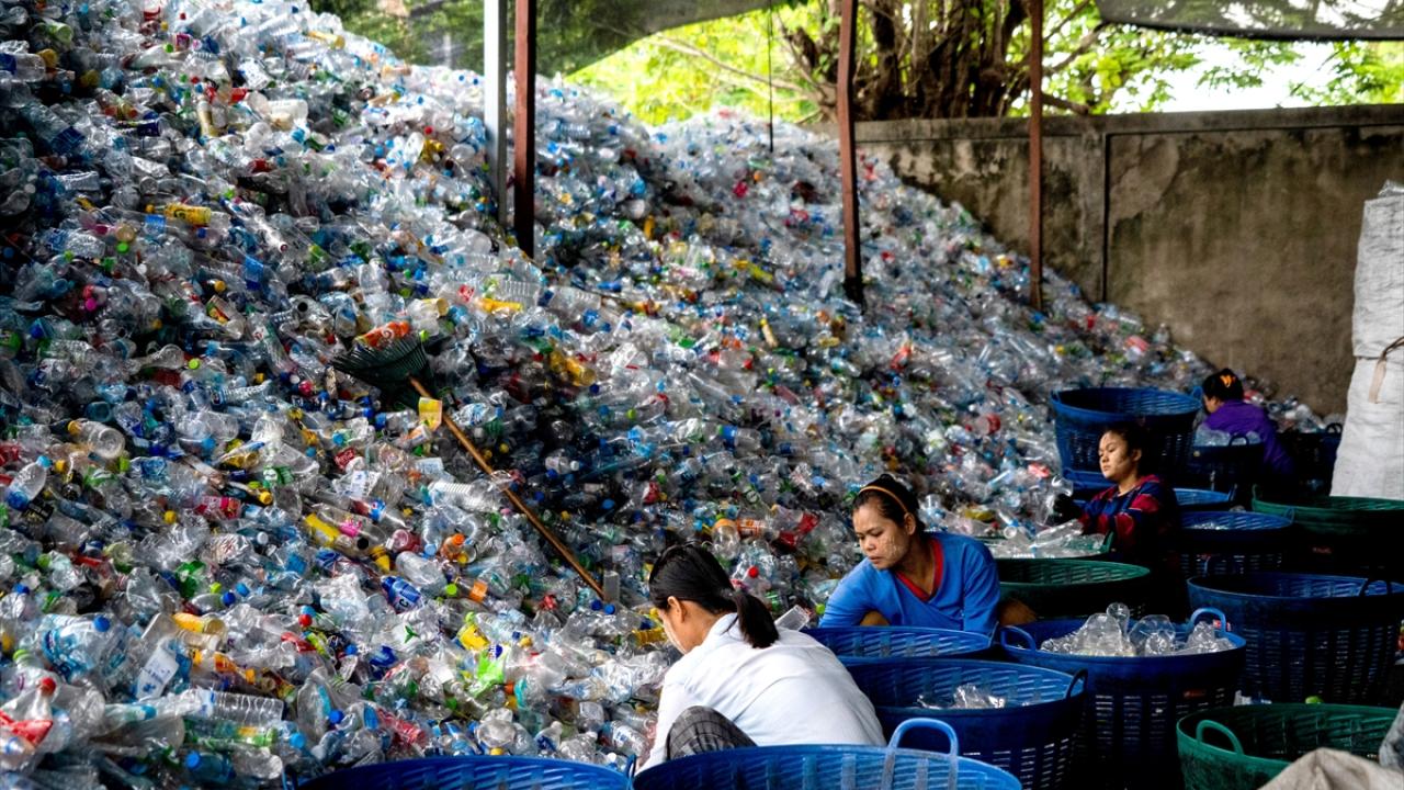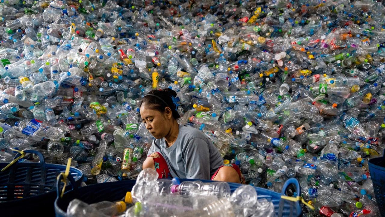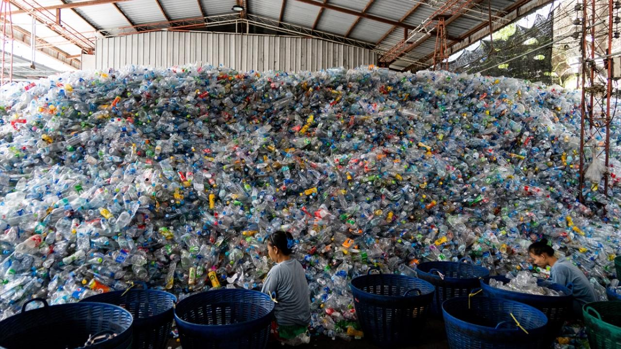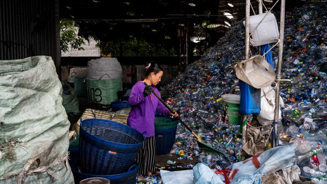 Tayland’ın Samut Prakan kentinin Bang Phli bölgesinde plastik atıkların toplanıp işlendiği geri dönüşüm merkezi görüntülendi.