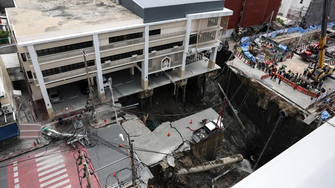 Tayland'ın başkenti Bangkok'ta yolun çökmesi sonucu derinliği 50 metreye, genişliği 30 metreye kadar ulaşan dev çukur meydana geldi.