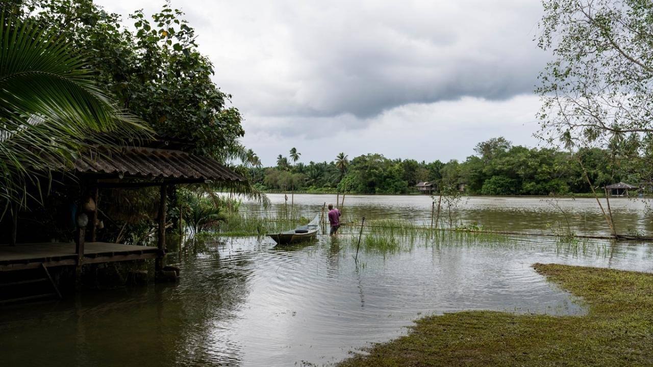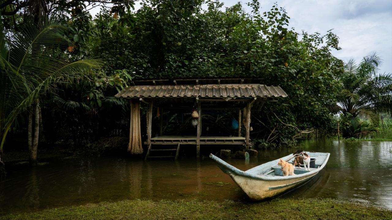 Tapi Nehri`nin orman mangrovlarında kayığıyla gezen Duangmanee, nehirden kedilere yiyecekleri balıkları topluyor.