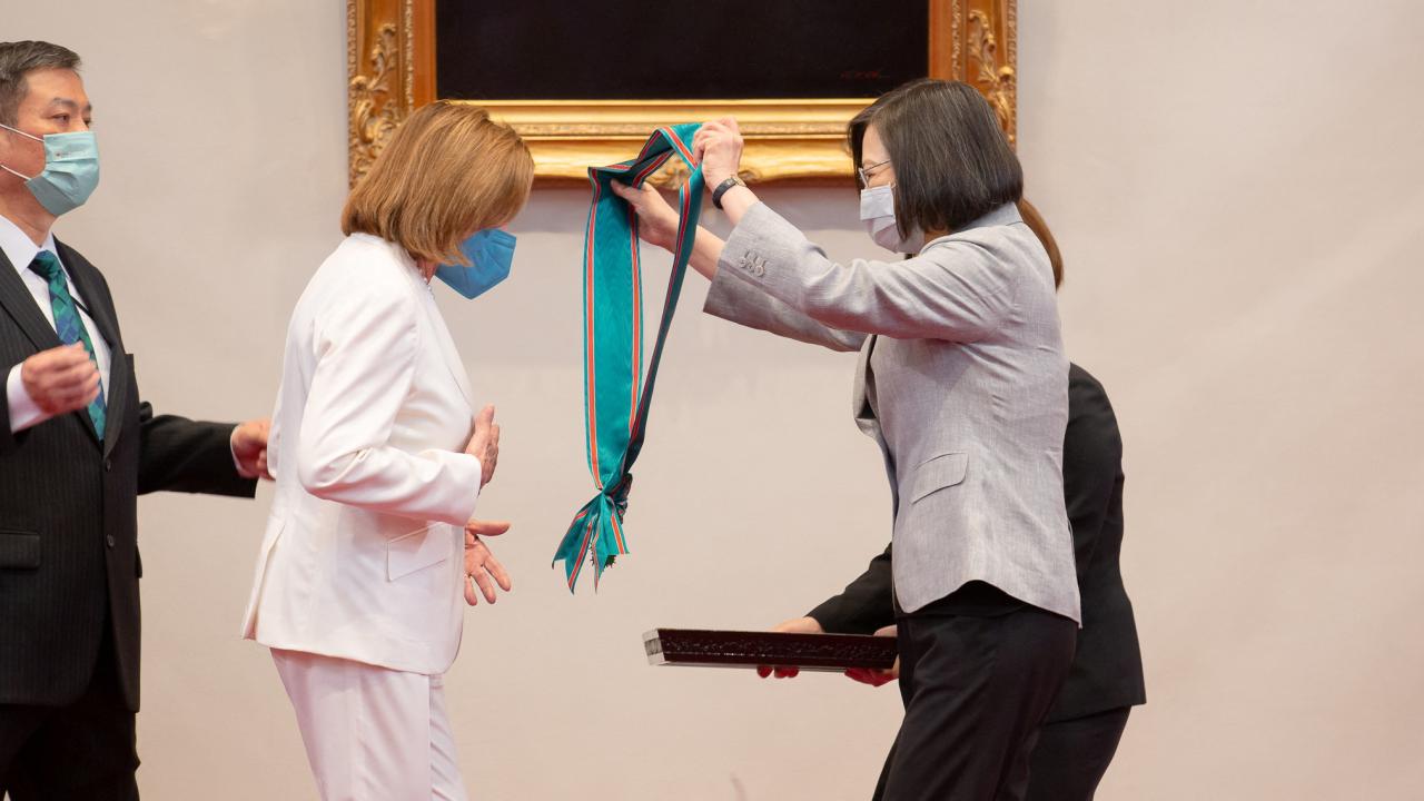 Pelosi de Kongre adına kendisine tevdi edilen onur için Tsai`ye teşekkür ederken, "ABD`nin Tayvan ile dayanışması hayatidir. Tayvan`da ve dünyanın geri kalanında demokrasiyi koruma kararlılığımız değişmemiştir. Ziyaretimiz, ABD`nin Tayvan`a destek sözünü terk etmediğini açıkça göstermiştir." dedi.