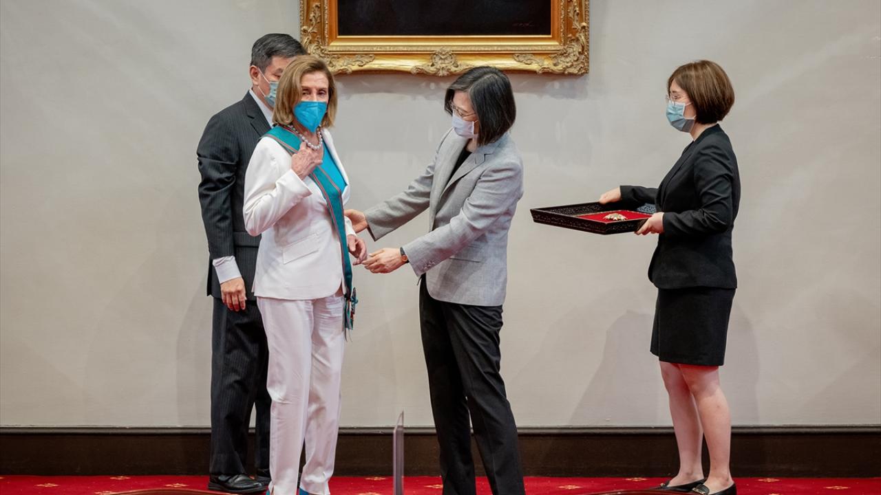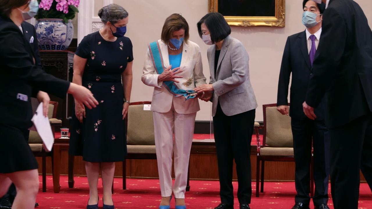 Tsai, görüşmede, Pelosi`ye, Tayvan`daki hükümetin devamı olduğunu öne sürdüğü Çin Cumhuriyeti`nin "Uğurlu Bulutlar Düzeni" adı verilen şeref madalyası ve özel şeridini takdim etti.