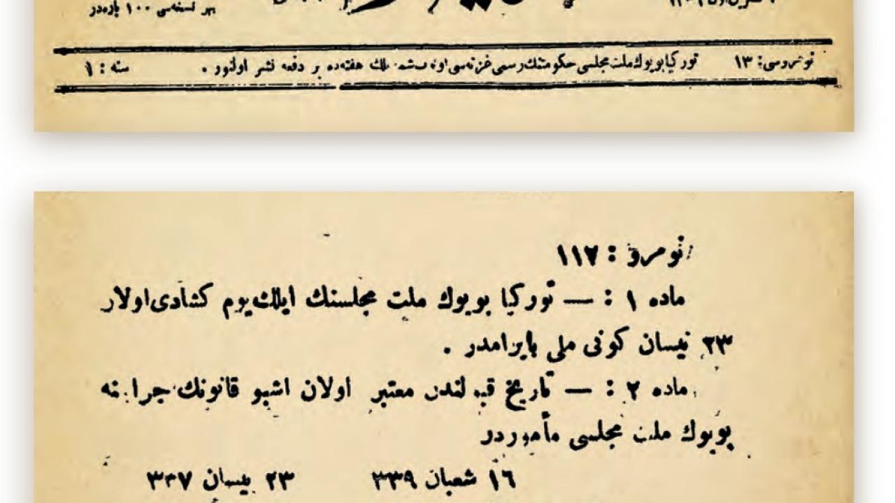 23 Nisan`ın Milli Bayram Addine Dair Kanun, Birinci Büyük Millet Meclisinin açılışından bir yıl sonra, 23 Nisan 1921`de kabul edildi ve 2 Mayıs 1921`de yürürlüğe girdi.